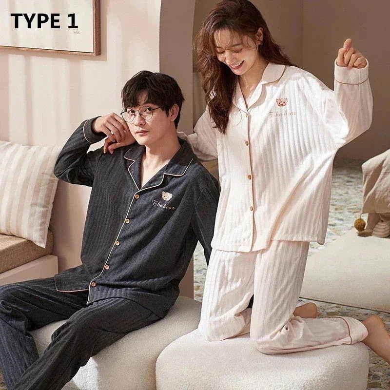 涼しく楽ちんセットアップ2024 ルームウェア 春 パジャマ カップルペアルック パジャマペアルック レディース/メンズ ネグリジェ 前開き 春秋 ペアパジャマ 長袖