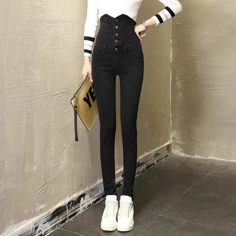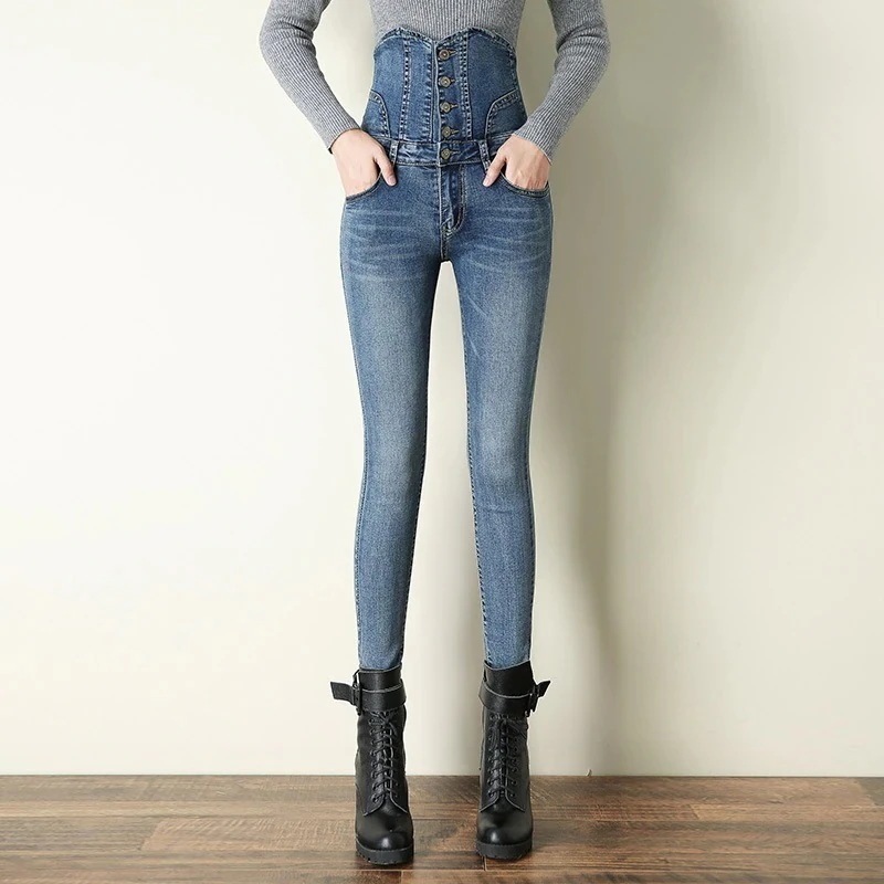 2024 デニムパンツデニ 超ハイウエストジーンズ 足ストレッチレディース 春秋服 韓国版スリムタイツ ダメージ ロングパンツ レディース ワイドパンツ 脚長効果!スキニーデニムパンツ