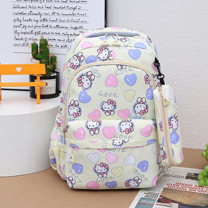 大容量リュックサック 可愛いアニメ柄 クロミちゃん キティちゃん カジュアルリュック ポーチ付き 多色 中学生高校生大学生 通学旅行バッグ