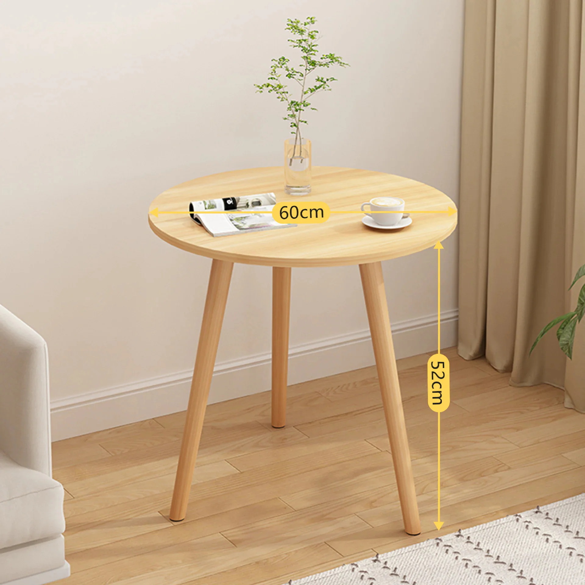 風 木製テーブル ソファーサイドテーブル 円形 丸型座卓ミニテーブル デスクセンターテーブル コーヒーテーブル 一人暮らし 簡単組み立て