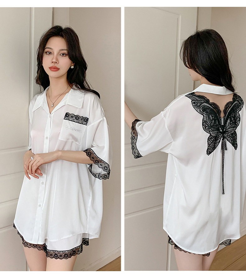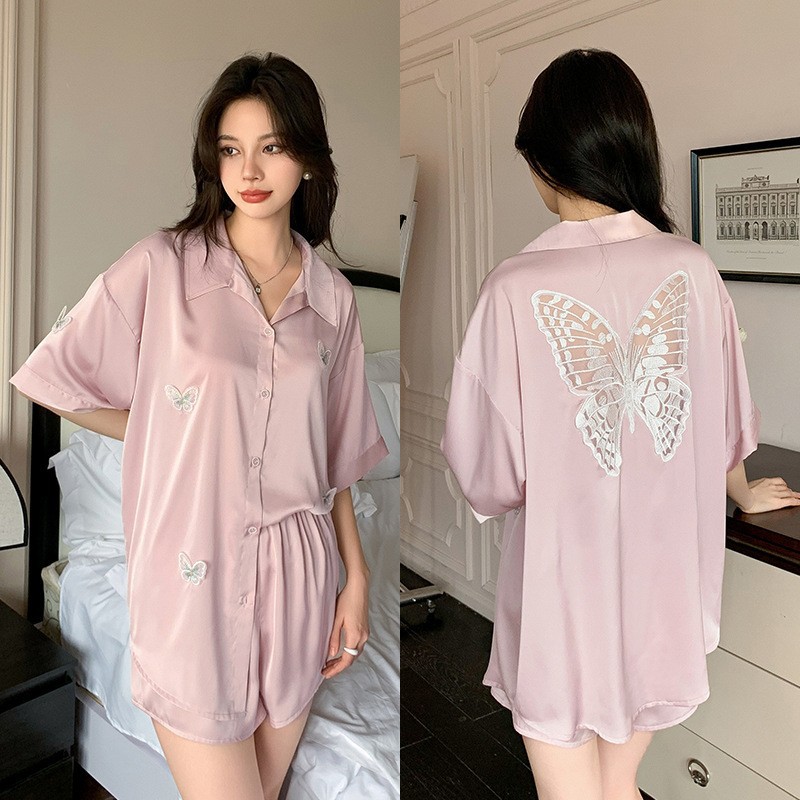 最安値に挑戦! 韓国ファッション 蝶の パジャマ レディースサマー ルームウェア ゆったり シルクサテンの 部屋着