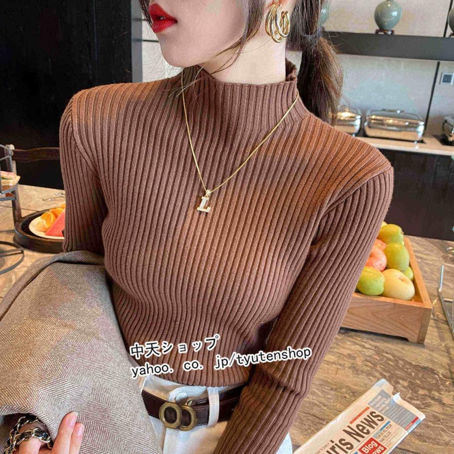 高級な質感 ニットセーター リブニット レディース ニットトップス インナーコーデ 秋冬 セーター 長袖 着痩せ 春トップス 韓国風 ハーフネック おしゃれ 大人 ファッション