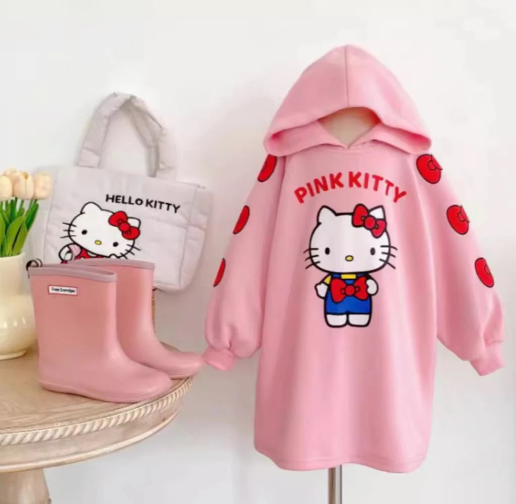 超可愛い ハローキティ キッズ 長袖 パーカー ワンピース 綿 春 秋 子供服 女の子 フード付きパーカースカート韓国子供服 誕生日プレゼント ギフト