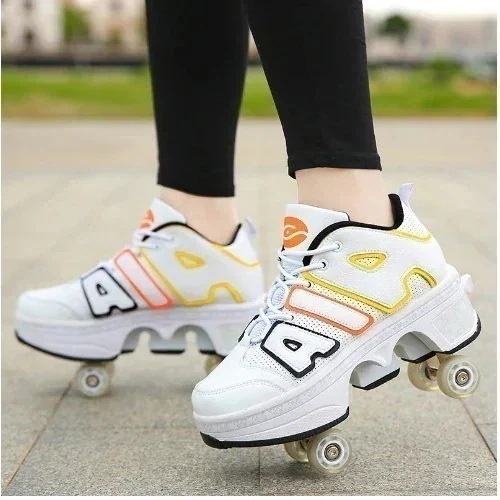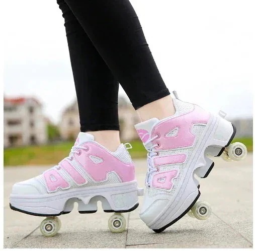 【送料無料】 (34-40子供青少男女変形靴四輪両用ローラースケート二列暴走靴ローラースケートスケート