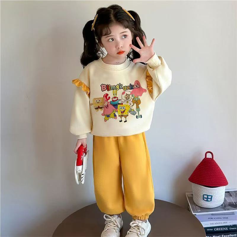 【急速出荷】子供服 スポンジ・ボブ 長袖 春秋 綿 キッズ セットアップ キャラクター パーカー ロングパンツ 女の子上下2点セット