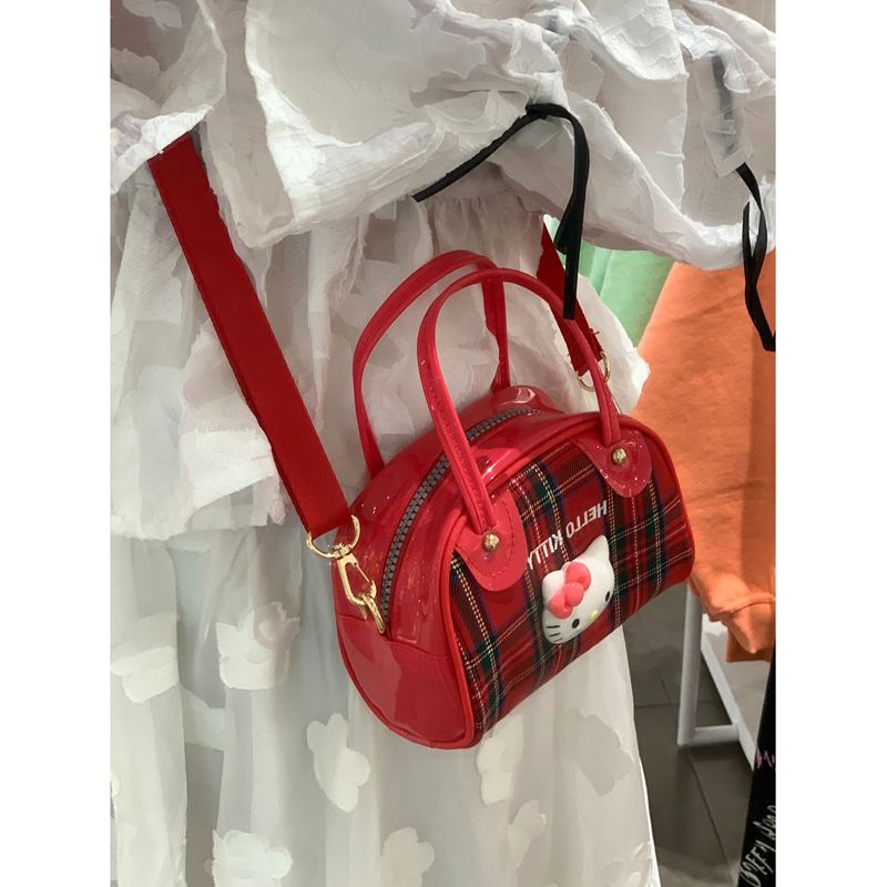 ハローキティ 猫 ワンショルダー チェック柄バッグ 昭和レトロ y2k ミレニアム かわいい 携帯メッセンジャーバッグ