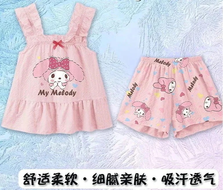 【送料無料】女の子キャミソール薄クロミパジャマセット女の子部屋着赤ちゃんベスト半ズボン2点セット シナモロール マイメロディ