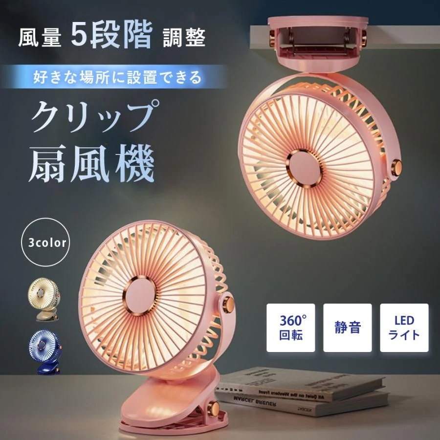 卓上扇風機 扇風機 クリップ 小型 ライト付き usb 静音 壁掛け 充電式 携帯 ハンディファン ポータブル オフィス アウトドア 2024