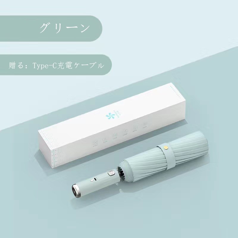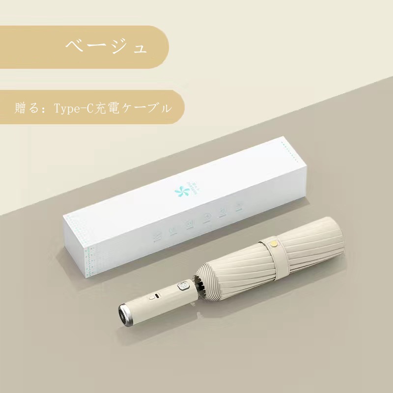 YICUCI日傘 ファン付き 折りたたみ 完全遮光 UPF50 99.9%UVカット 自動開閉 扇風機付け 傘 超軽量 折り畳み傘 10本骨 紫外線対策 日焼け対策 ワンプッシュ 軽量 ワンタッチ 晴雨兼用