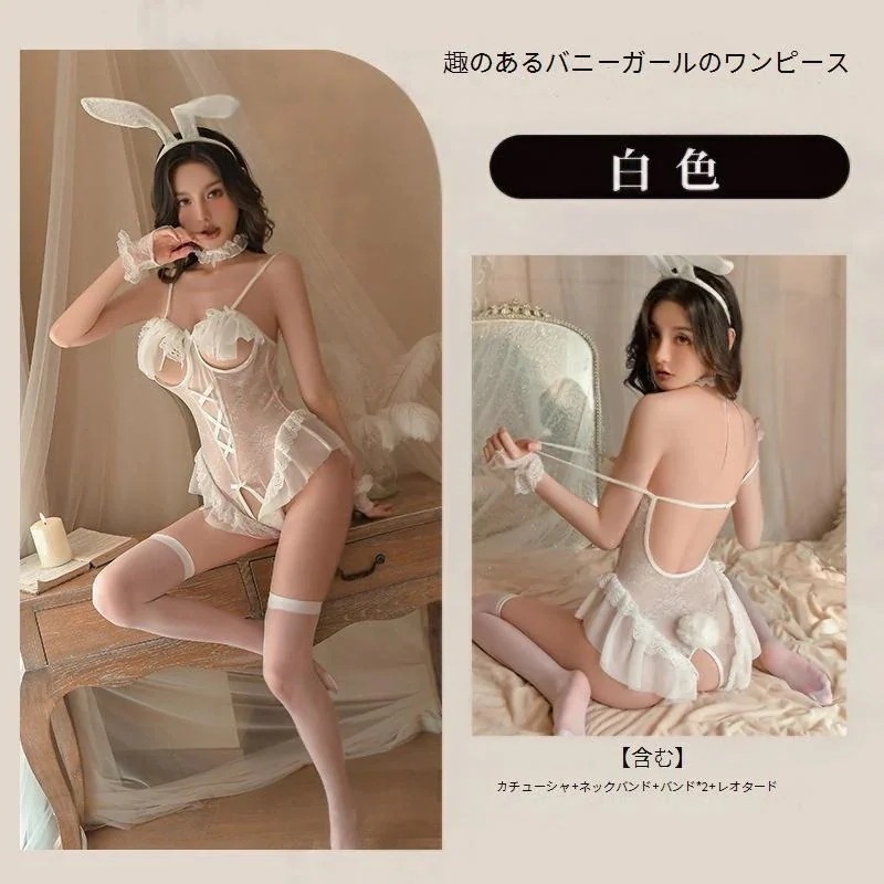 急速出荷!!!「即納」ランジェリー 誘惑 タイツ セクシー バニーガール クロッチレス シースルー ノーシャツ ユニフォームセット