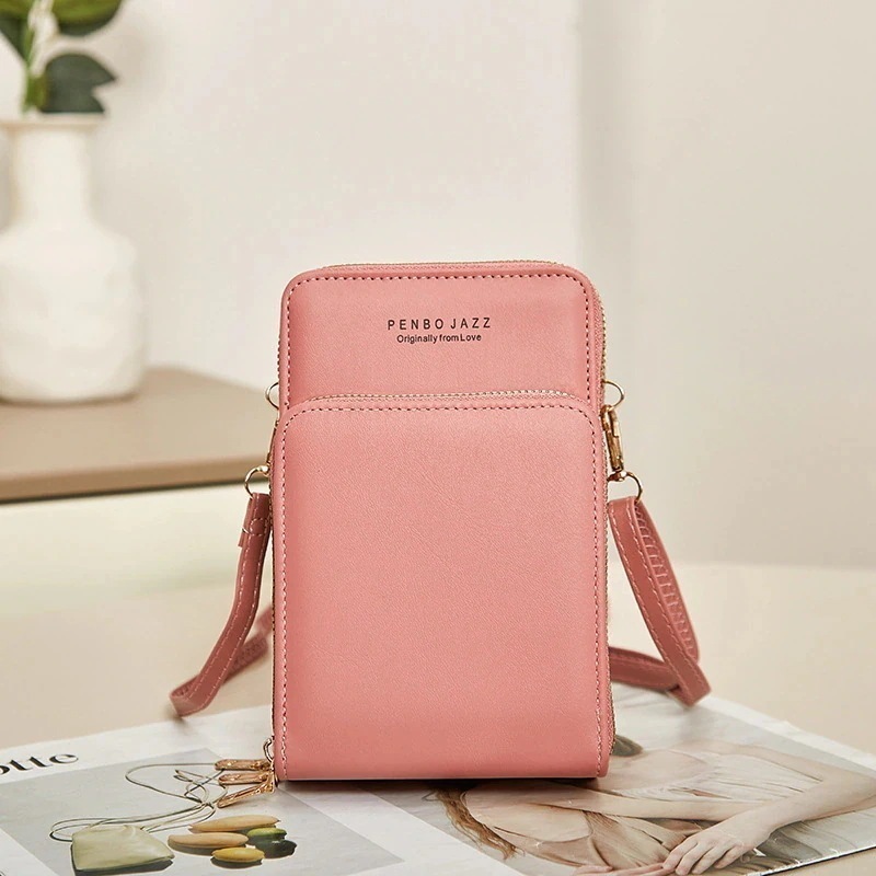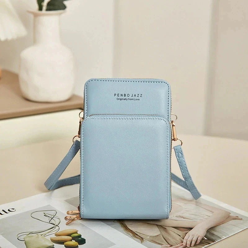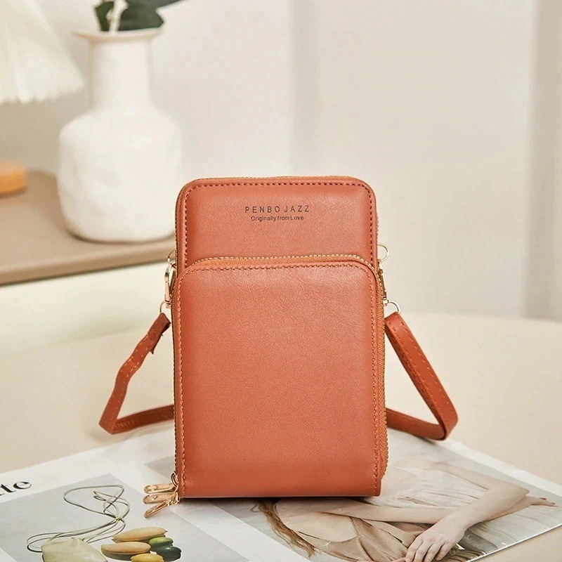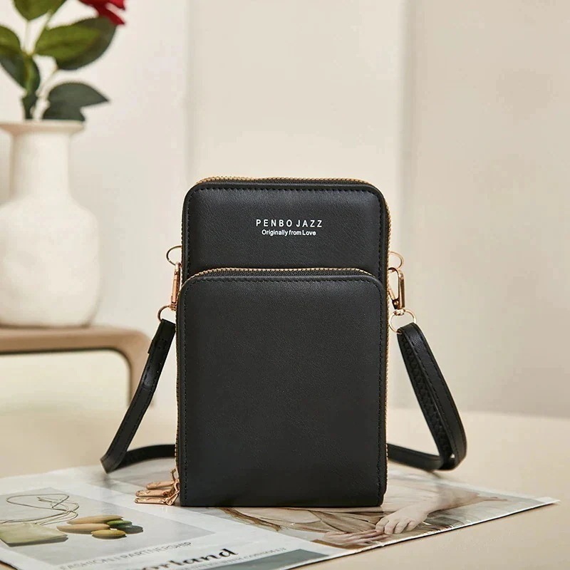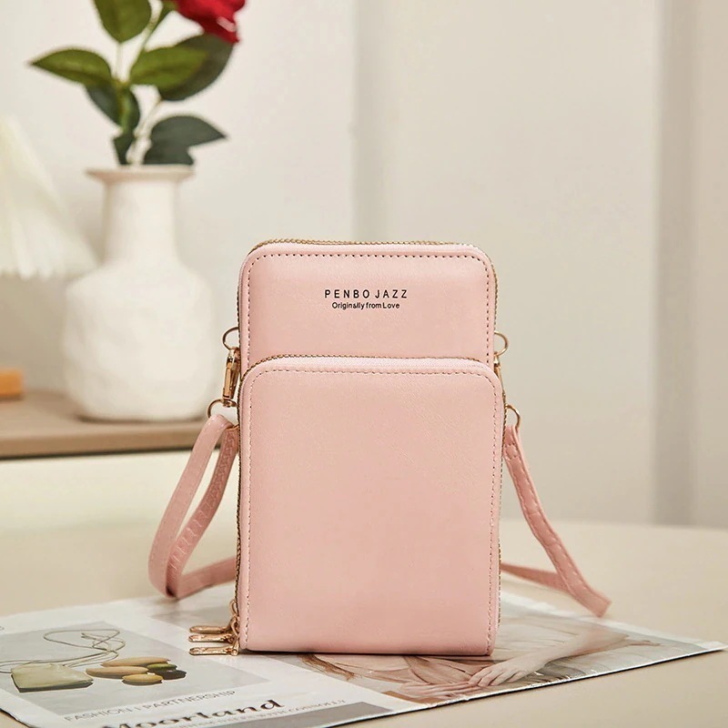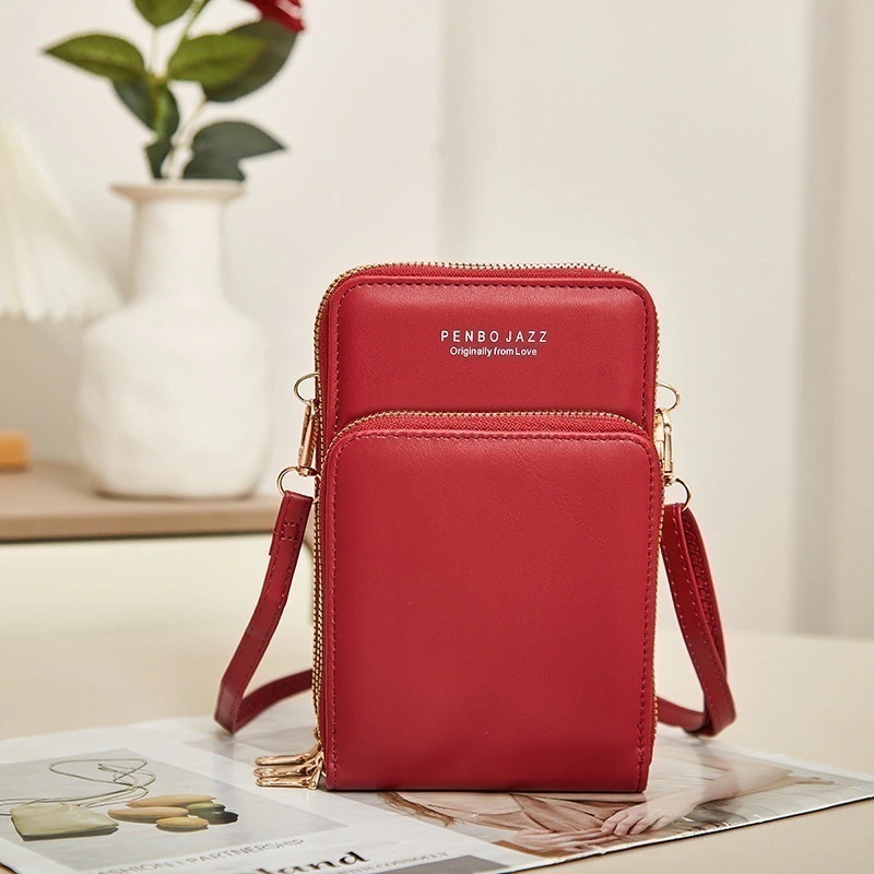 スマホポーチ携帯電話バッグ トリプルジップ 女性 多機能 クロスボディ ショルダーバッグ シンプル ミニ財布
