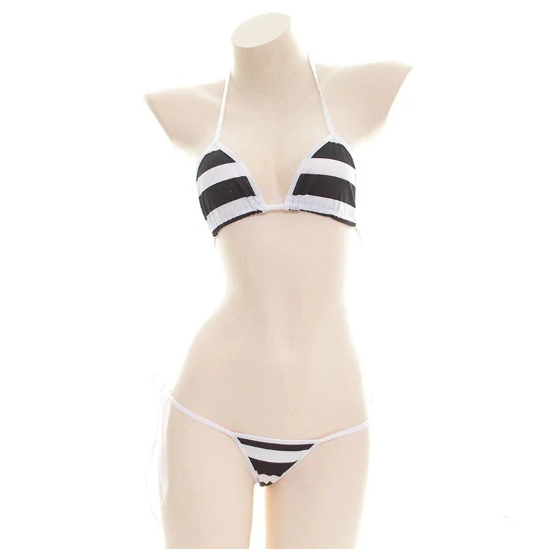 情趣下着 セクシーエロ ビキニ 太い棒ストライププリントビキニ情趣少女風バインダー下着死庫水 制服 コスプレ セクシー セットアップ レディース エロいコスプレ コスチューム アダルトグッズ