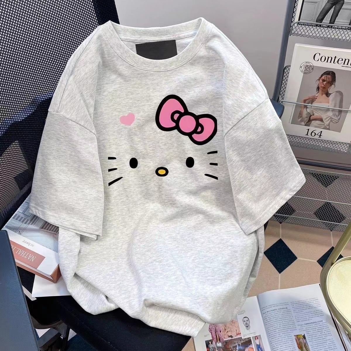 tシャツ レディース 半袖 ハローキティ 可愛い トップス 夏 カジュアル キティちゃん 韓国ファッション ゆったり ロングtシャツ 大きいサイズ