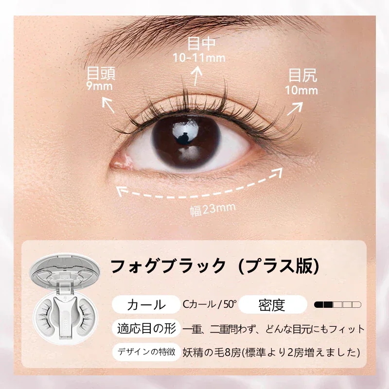 ・フォグブラックは毛が長めで、束感の中に短い毛もありフォークみたいな束感ではない!、目尻側が長くてとにかく目が大きくなる!