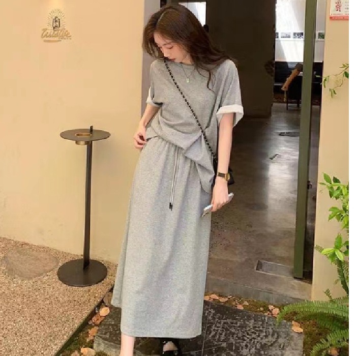 【本日限定】セットアップ 半袖Tシャツ+スカート レディース カットソー トップス 韓国ファッション ルームウェア セットアップ レディース 夏 韓国 きれいめ ワンピース ロング