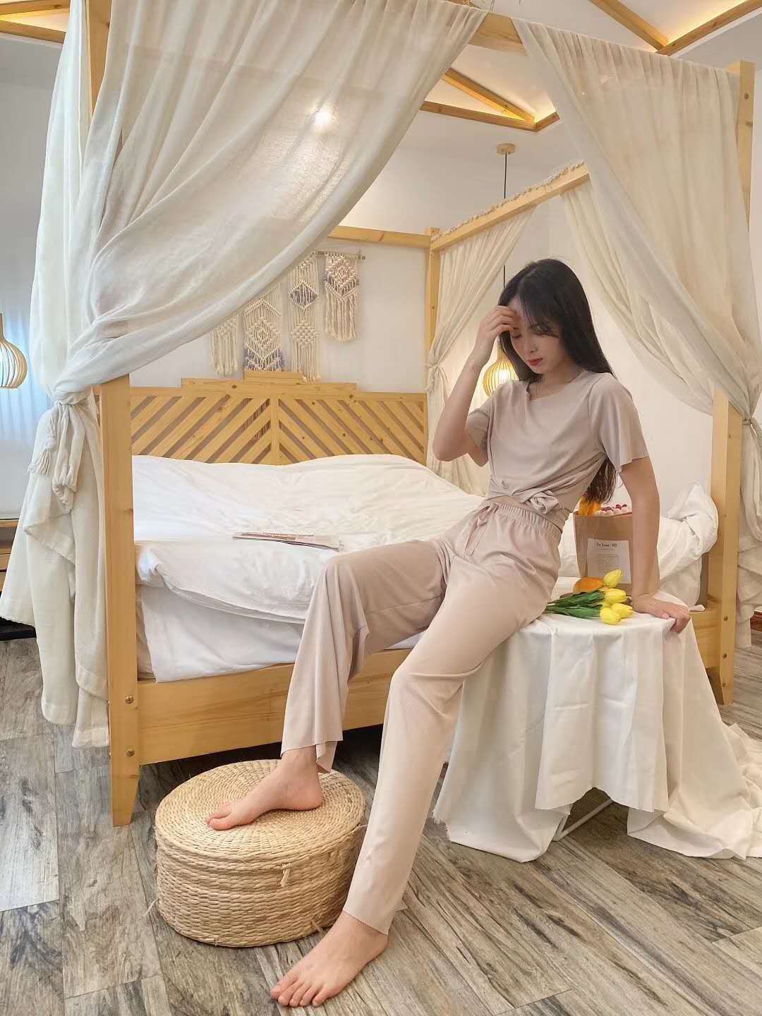 上と短パンはとっても良かったです!長ズボンは少しピタッとしていてシルエットが出やすいです。でもテロテロ感が夏に丁度いいかな!