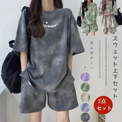 【本日限り激安販売】【2点セット】【2枚購入と2OO円OFF】セットアップレディーススウェット上下セット5色スポーツスーツレディース夏の新作薄手トップスTシャツショートパンツカジュアル2点セット ルー