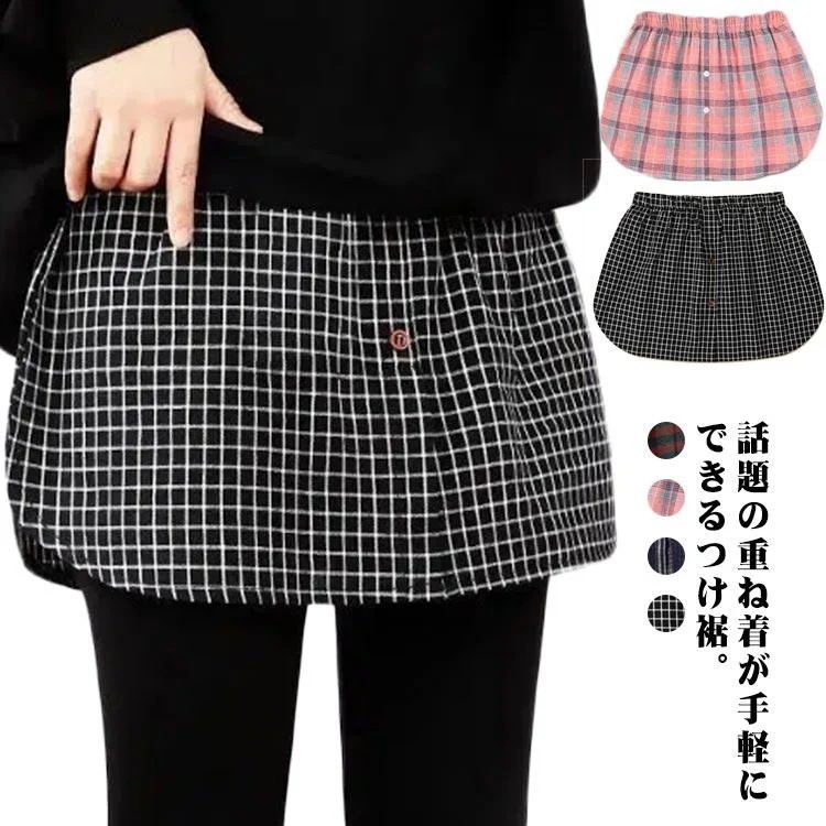つけ裾 付け裾 レイヤード レディース ウェストゴム シャツ スカート お洒落 カッコイイ 重ね着風 フェイクレイヤード 無地 チェック