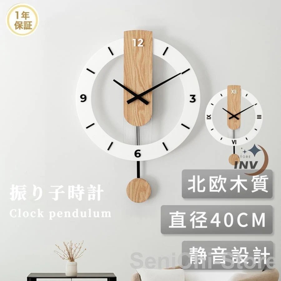 掛け時計 壁掛け時計 おしゃれ 静音 北欧 白 シンプル 40cm 振り子時計 木製 壁時計 北欧 壁掛け 掛時計 かわいい 音がしない オシャレ お洒落 木目調