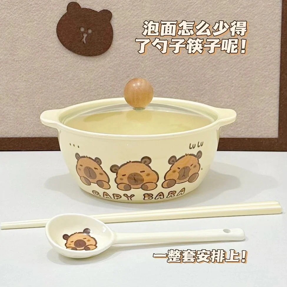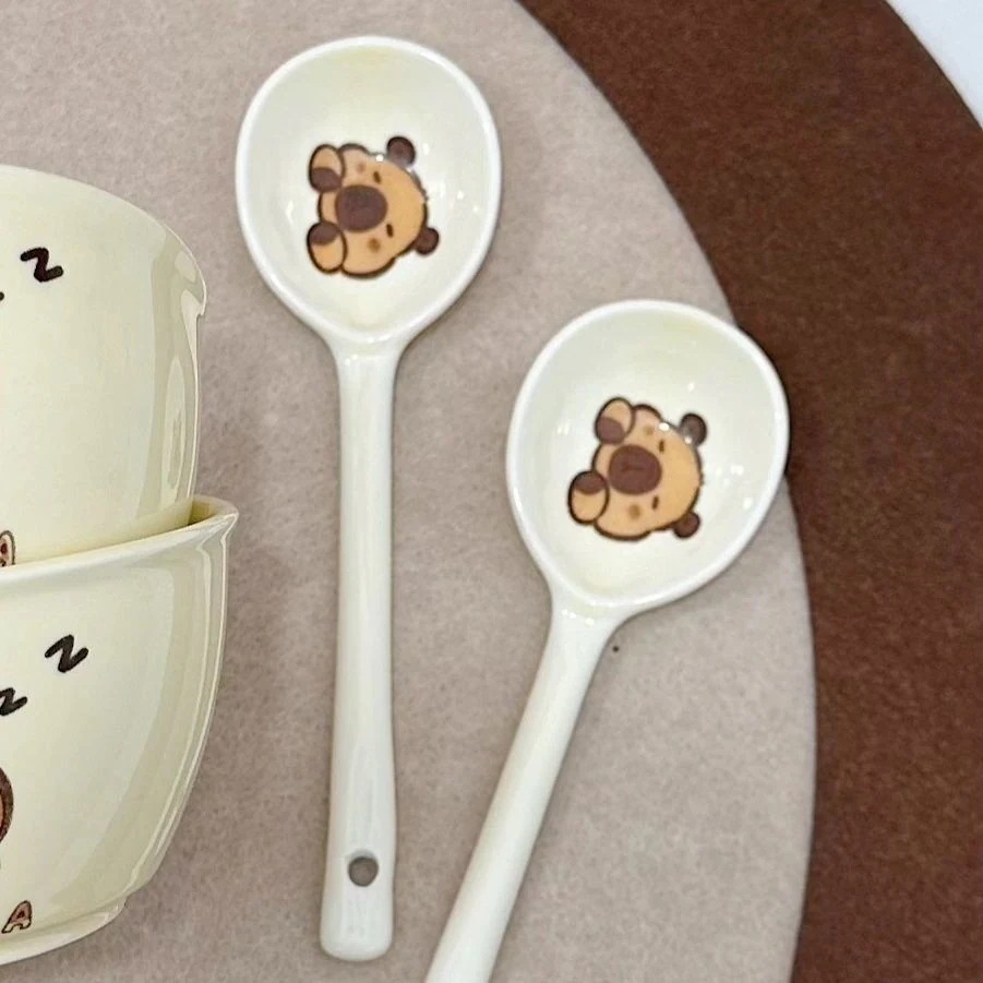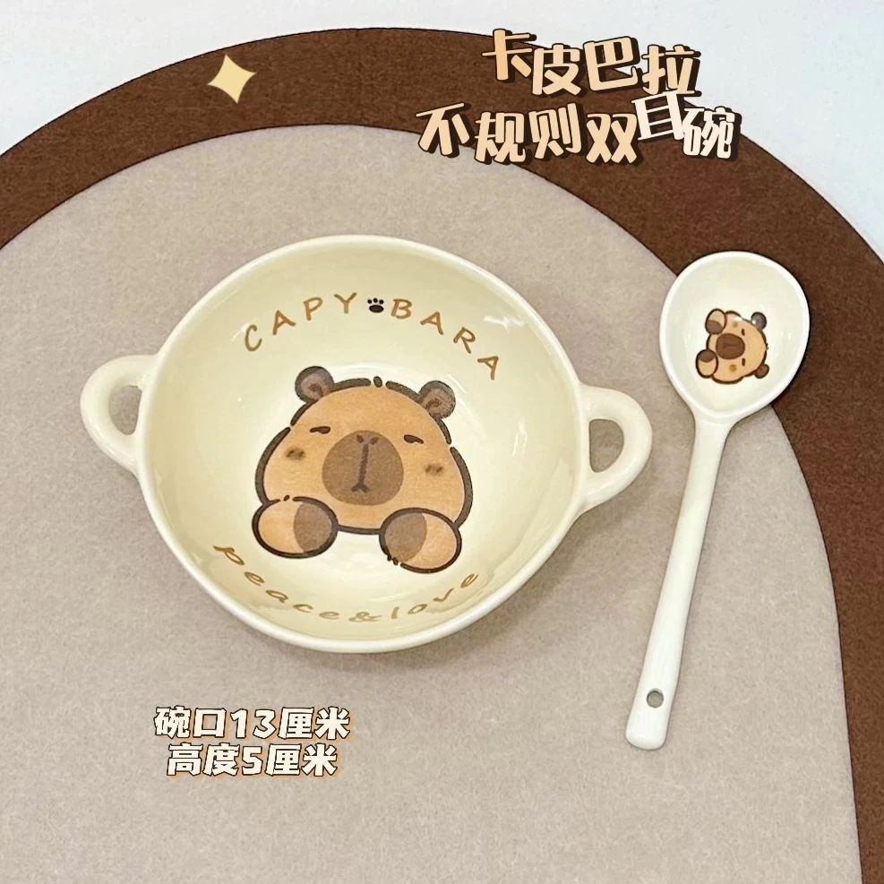 かわいい漫画のカピバライン高見え家庭用ボウルとスプーンセラミック食器セット丼プレートスプーン