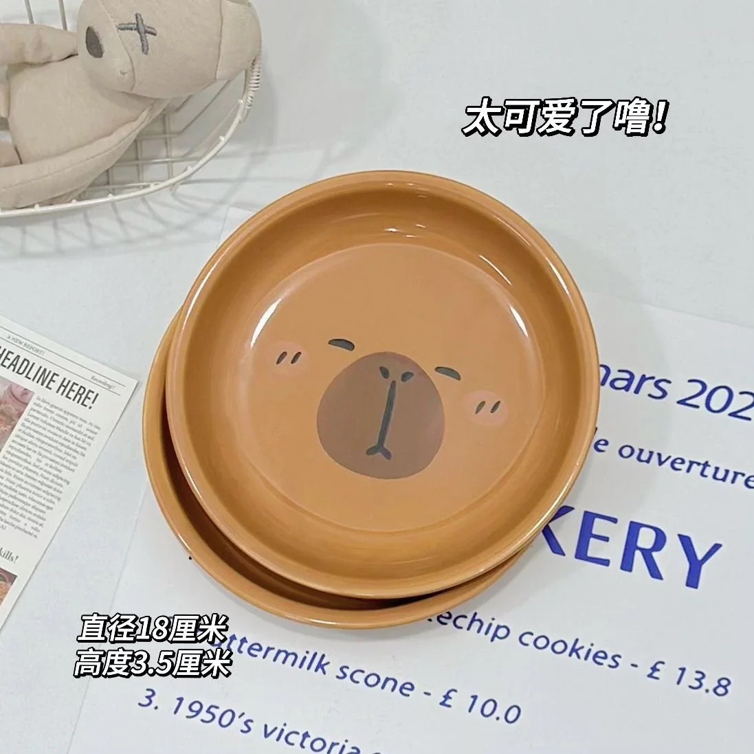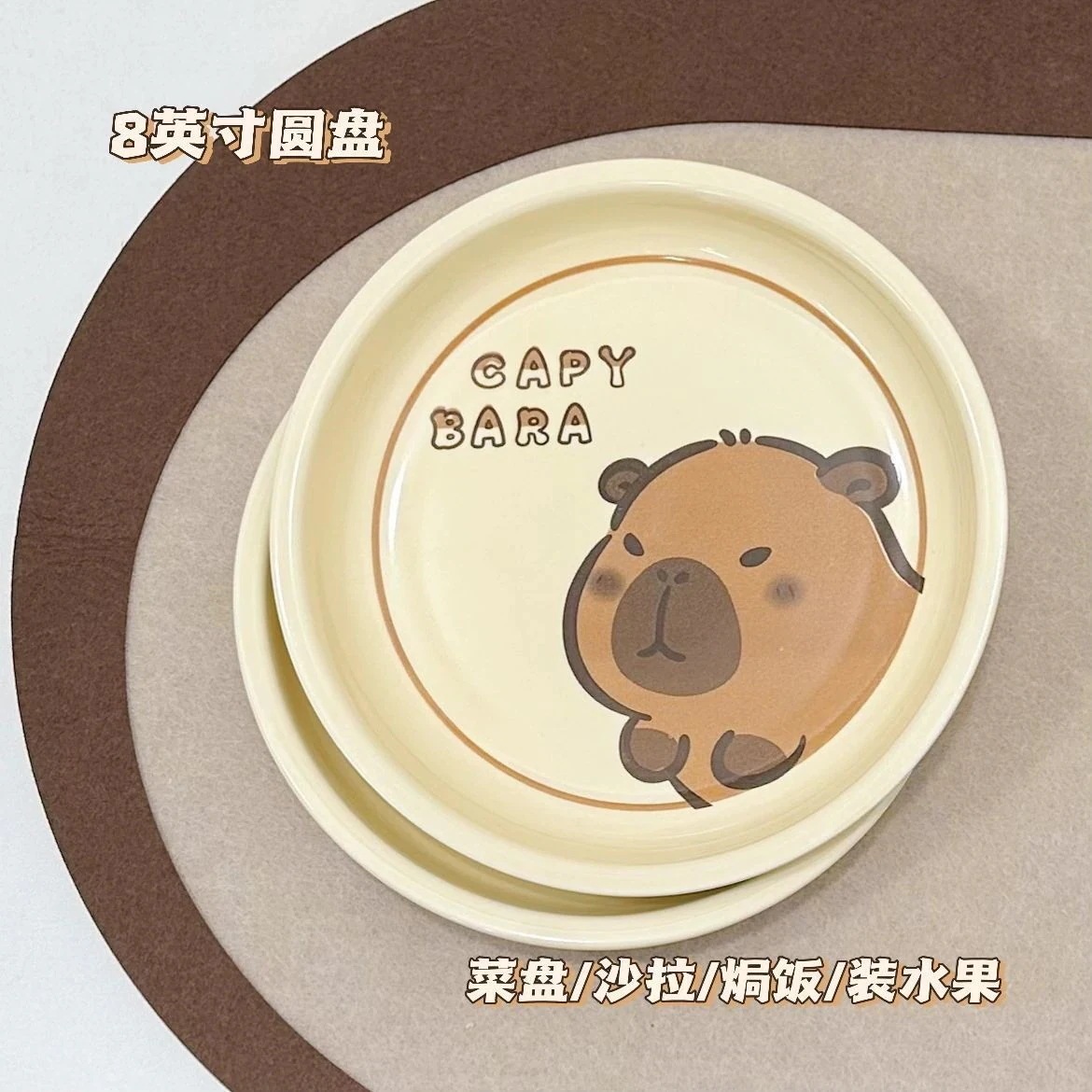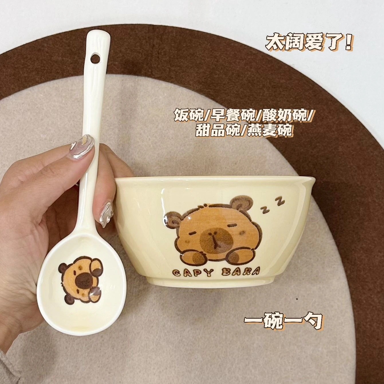 かわいい漫画のカピバライン高見え家庭用ボウルとスプーンセラミック食器セット丼プレートスプーン