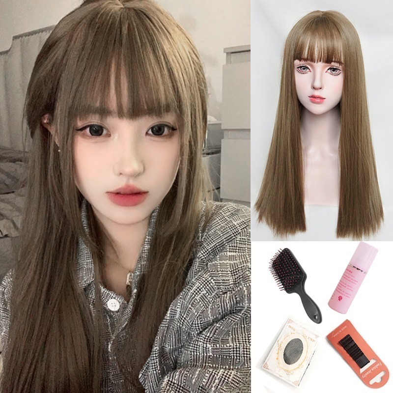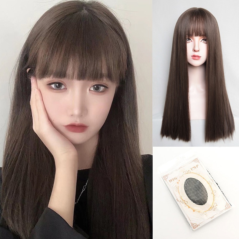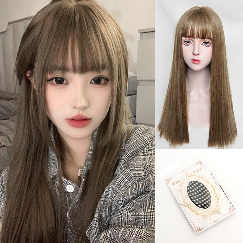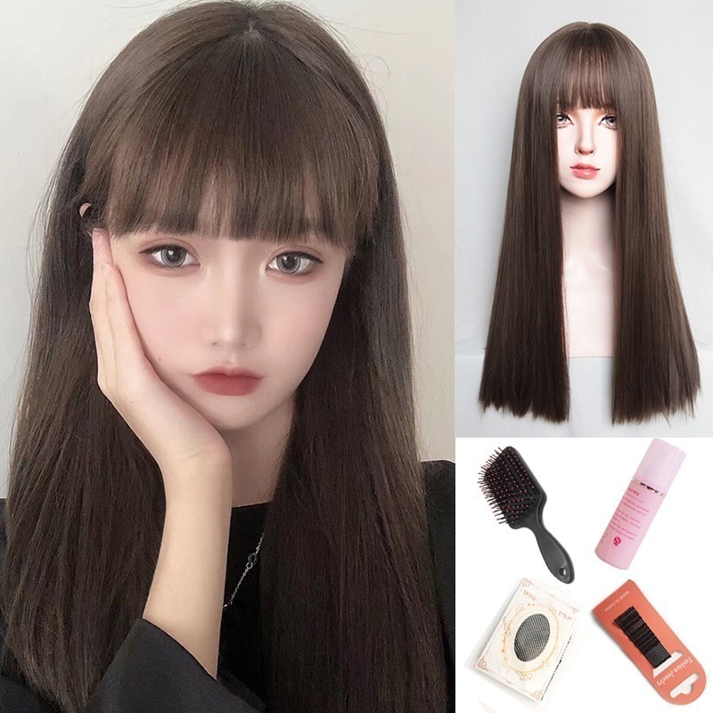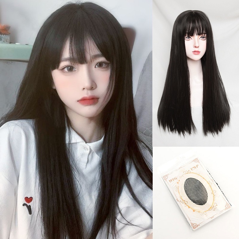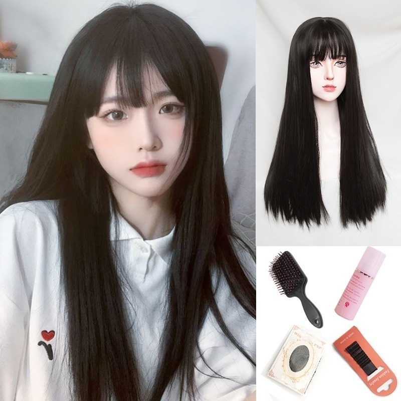 かつら女長髪自然少女全头套気質日常黒髪ストレートシミュレーション人発糸新型ウィッグセット