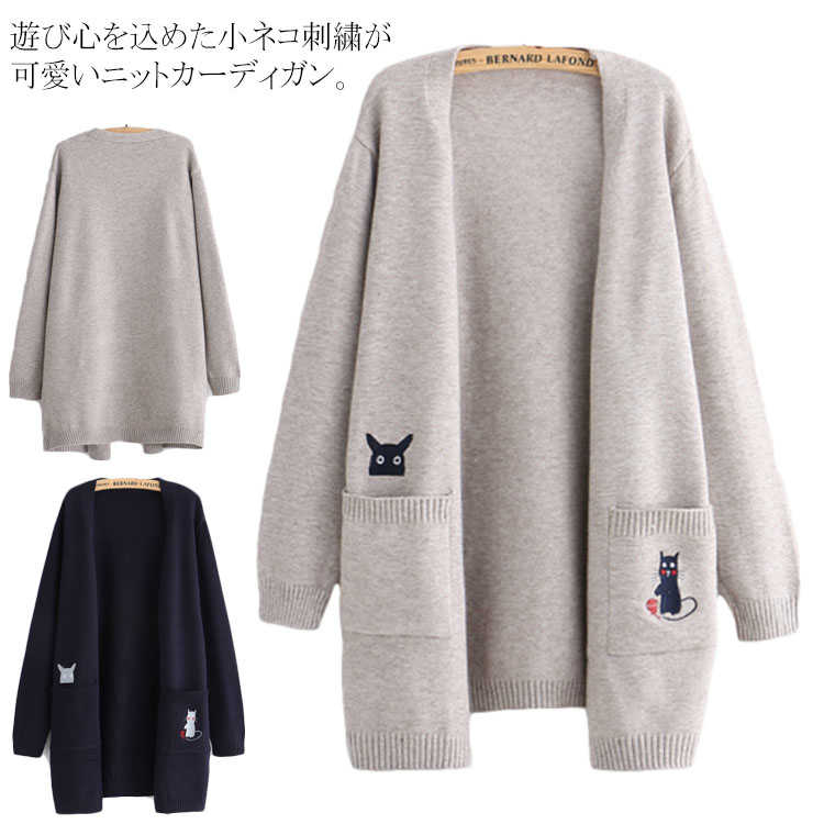 猫が可愛い 刺繍 カーディガン ニットカーディガン レディース 可愛い アウター 長袖カーディガン