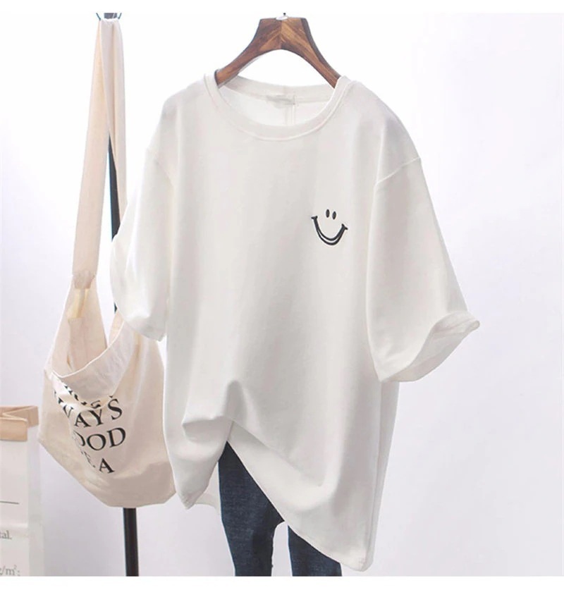 Tシャツ 半袖 レディース カットソー ゆったり 笑顔 ロングT 薄手 カジュアル おしゃれ トップス 涼しい シンプル 着まわし 通勤 通学 夏