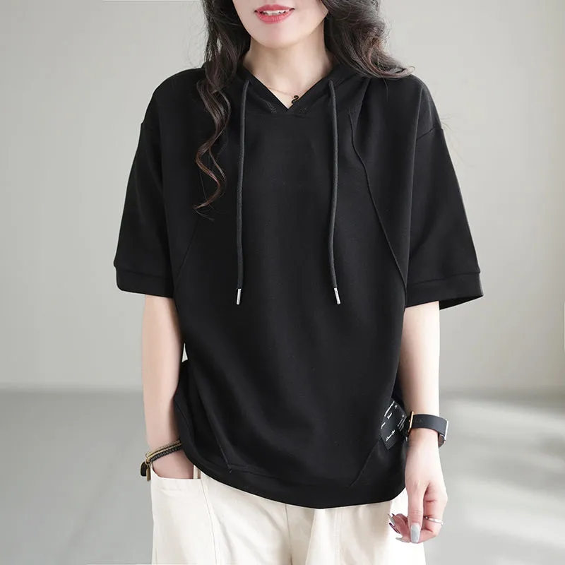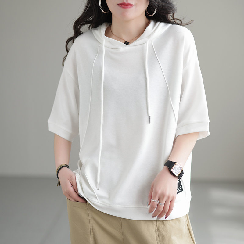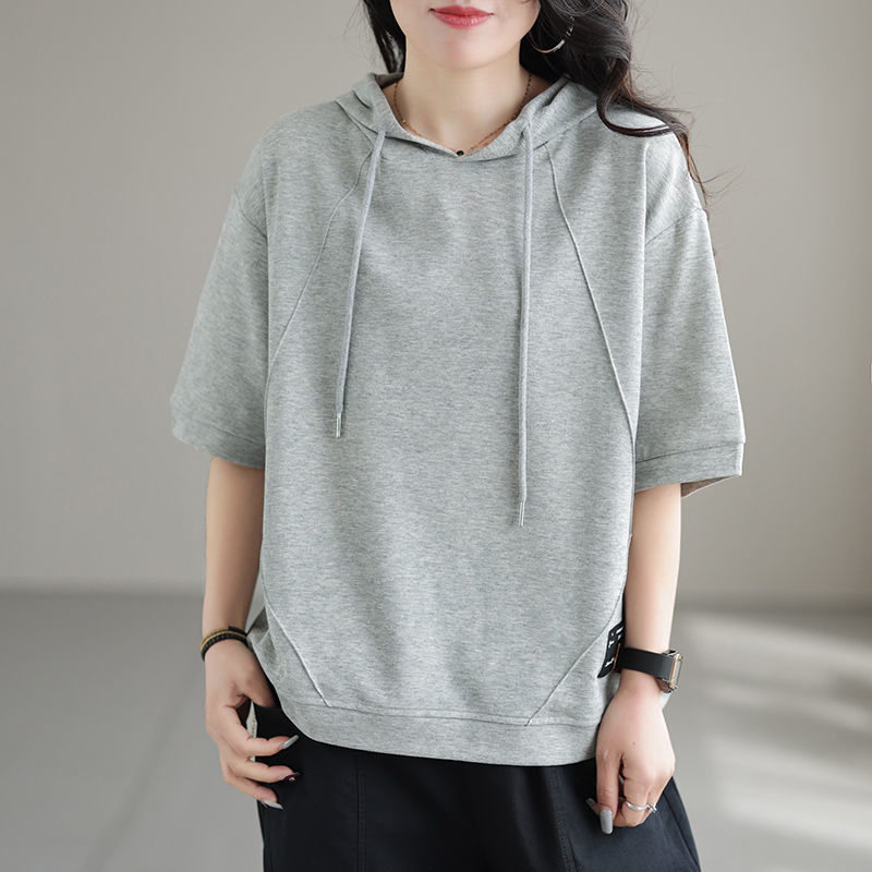 半袖パーカー レディース パーカー 五分袖 フード付き ゆったり 薄手 Tシャツ カジュアル カットソー トップス プルオーバー 夏服 おしゃれ
