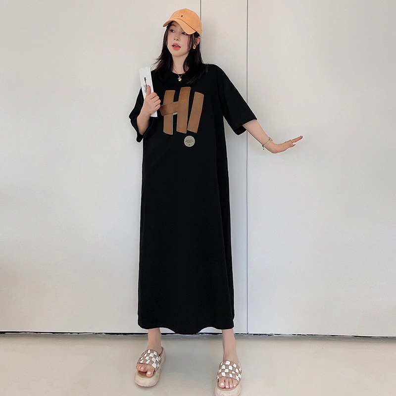夏新作韓国プリント大きいtシャツ女性用ミドル丈膝丈ゆったり大きいサイズゆったりスリットワンピースロングスカート 韓国 ロング ワンピース 夏 ドレス パーティードレス パーティードレス
