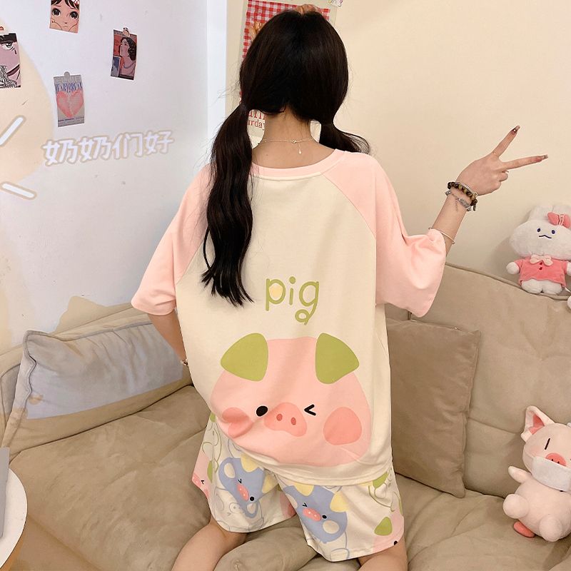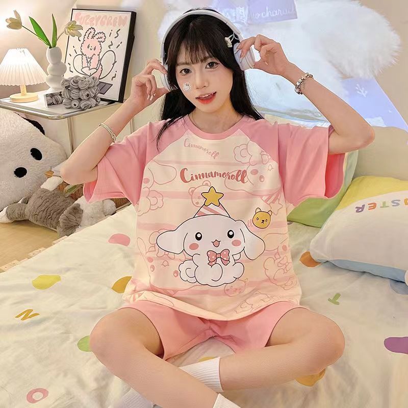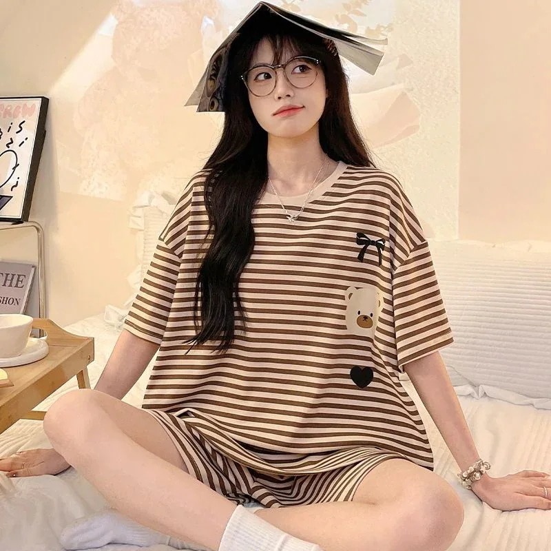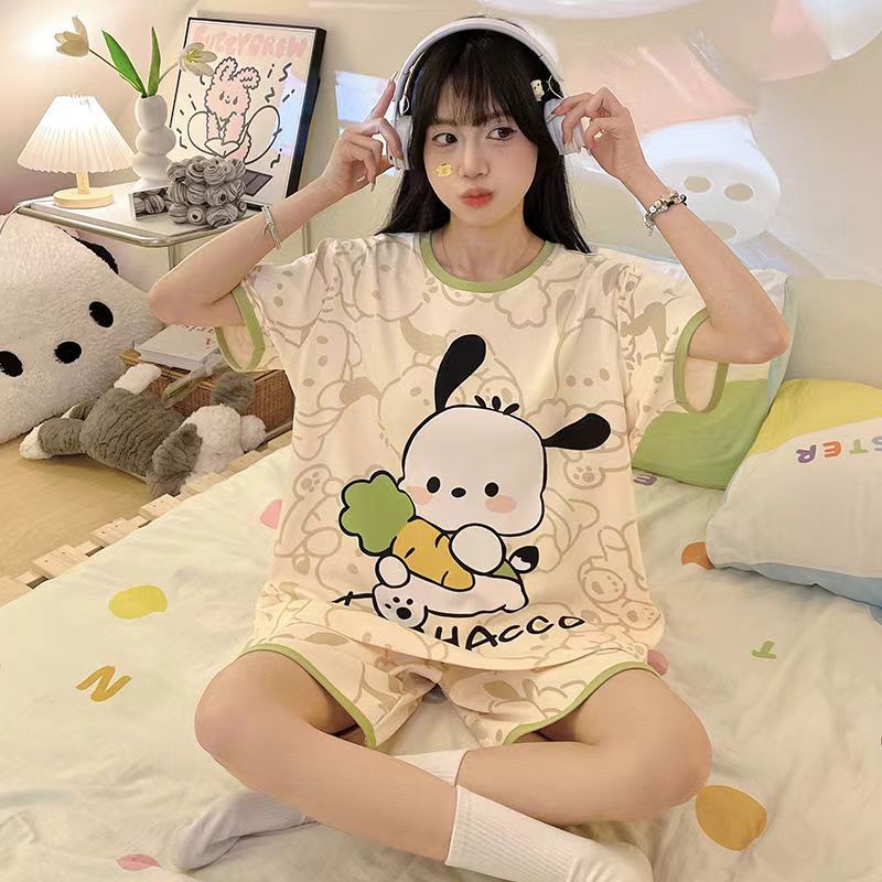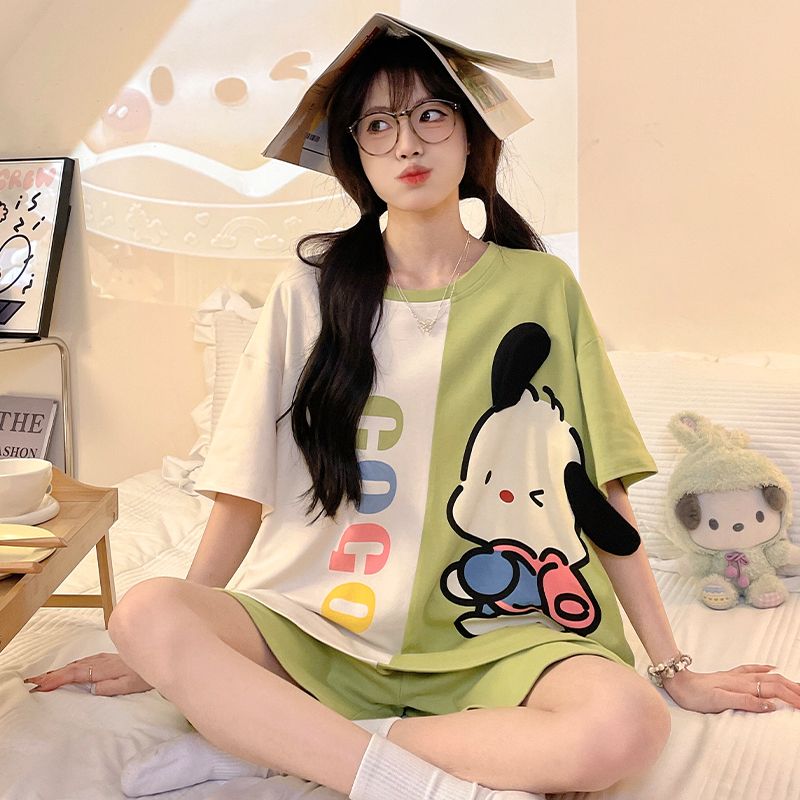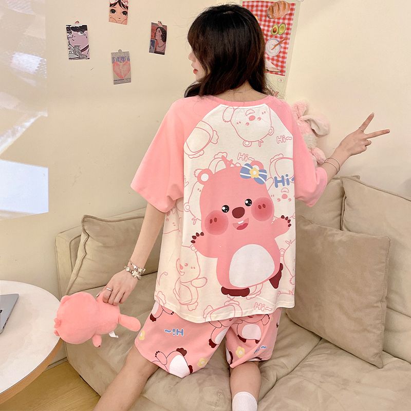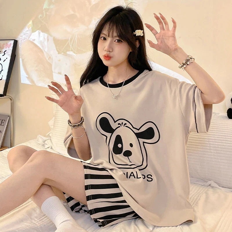パジャマの女の子のの子供の綿の薄い半袖の子供loopy女の子の家庭服の ルームウェア セットアップ レディース 夏 韓国 きれいめ ワンピース ロング