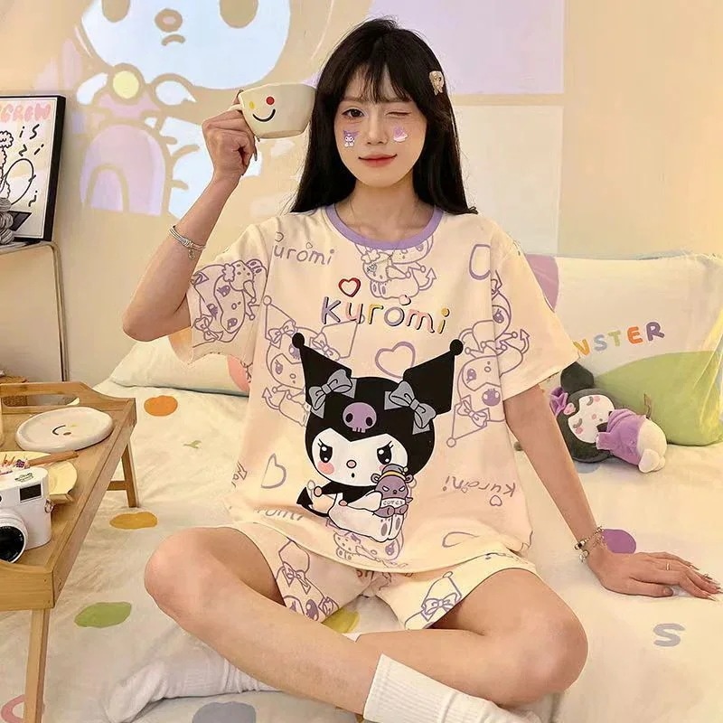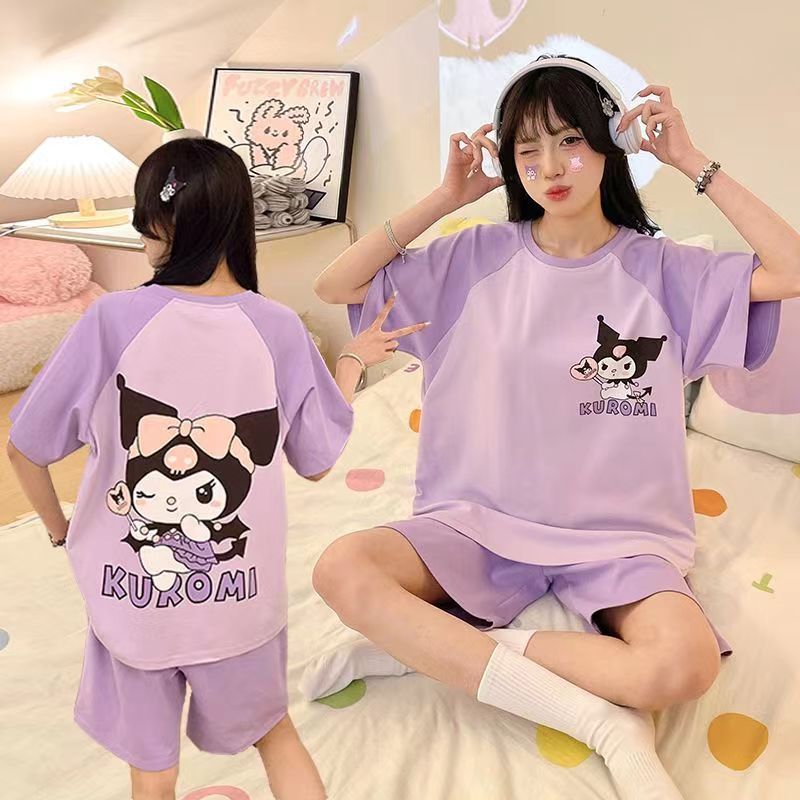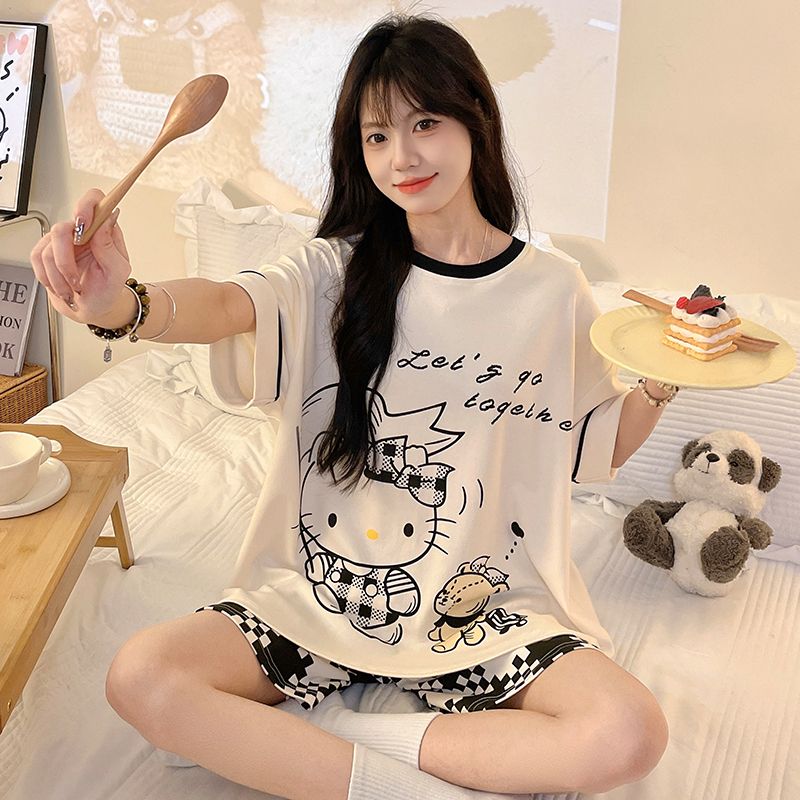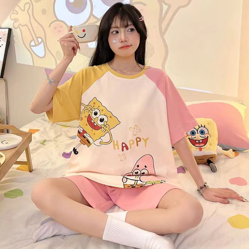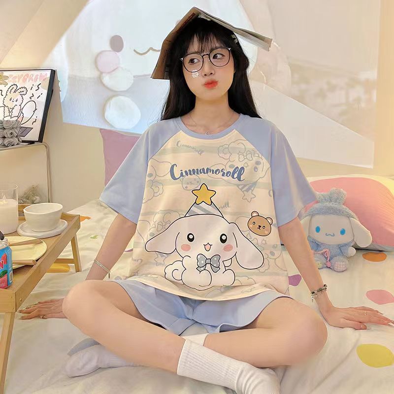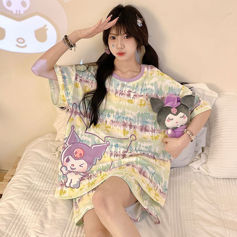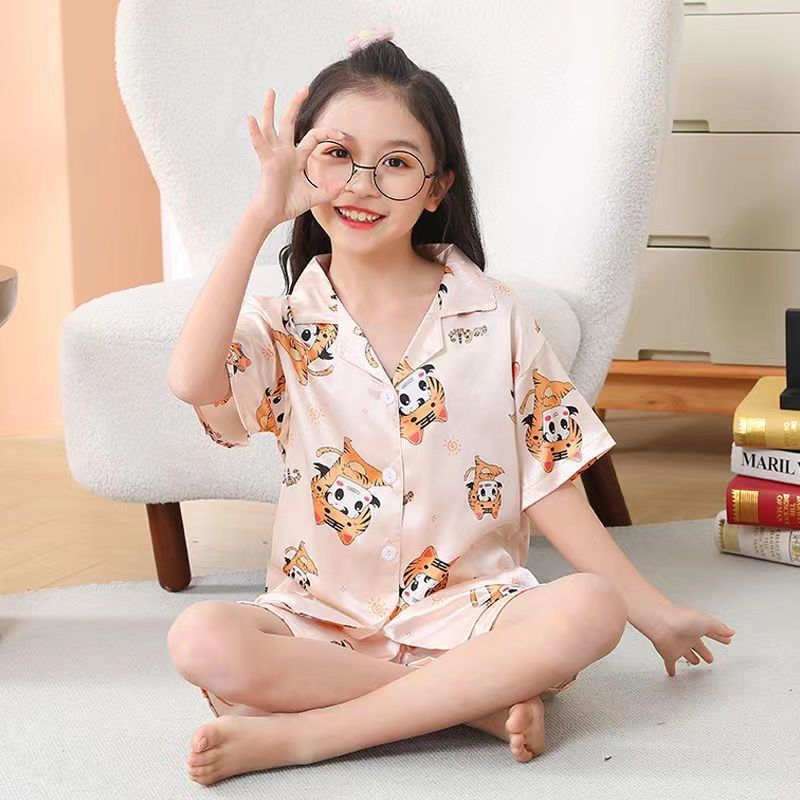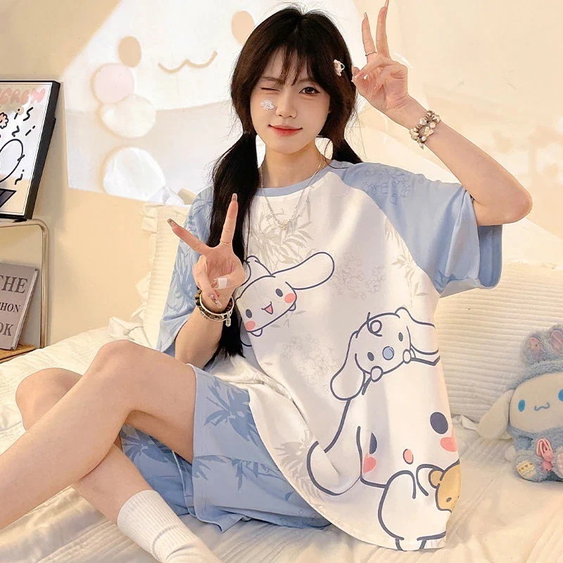 パジャマの女の子のの子供の綿の薄い半袖の子供loopy女の子の家庭服の ルームウェア セットアップ レディース 夏 韓国 きれいめ ワンピース ロング