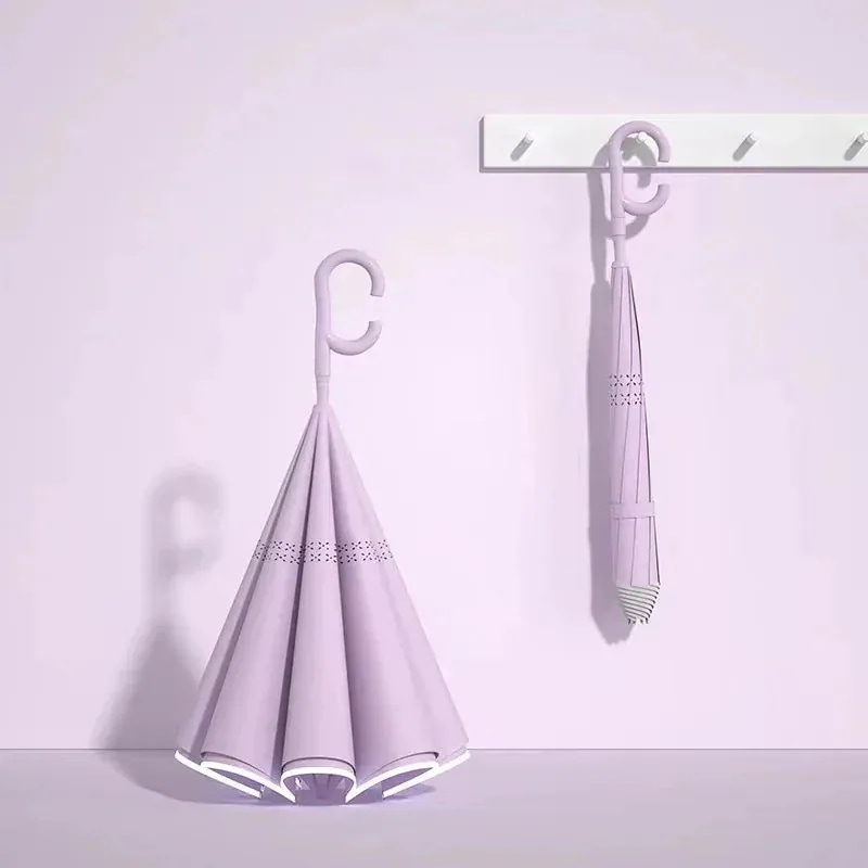 別の逆さ傘を使って気に入ってましたが、柄の部分がベタベタするようになってきたのでこちらを購入してみました。こちらは柄がプラスチックなので長く使えそうです。ですが開ける時に重圧を感じたり謎の音が聞こえる事があるので心配です。逆さ傘は車に乗る時濡れない事。自立することがとても便利ですが、ショッピングセンターなどに置いてある袋には入らないのでそこだけ不便です。