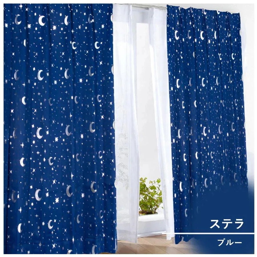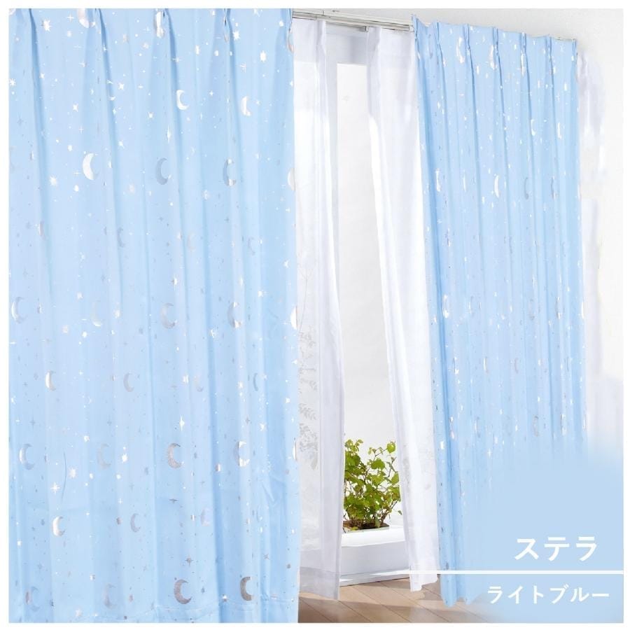 1級遮光カーテン 2枚セット 形状記憶 洗える おすすめ スター 星 ムーン 月 可愛い かわいい 姫系 子供部屋 寝室 オシャレ ドレープ 幅100 丈135 178 200