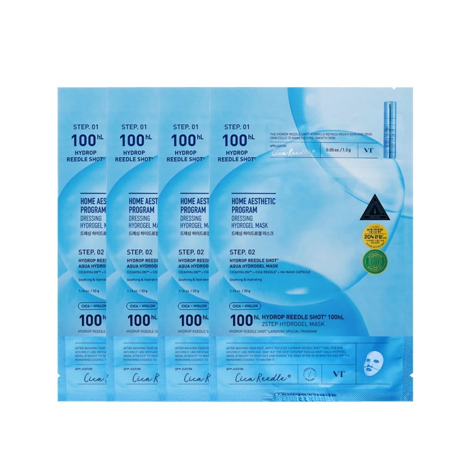 2ステップで使う集中ケアマスクセット。マイクロニードル(リードルショット)で肌に刺激を与え、その後にぷるんとしたハイドロゲルマスクでしっかり保湿。寝ている間も使えるほど密着感が高いです。 うるおいがしっかり肌に届き、乾燥しにくくなります。