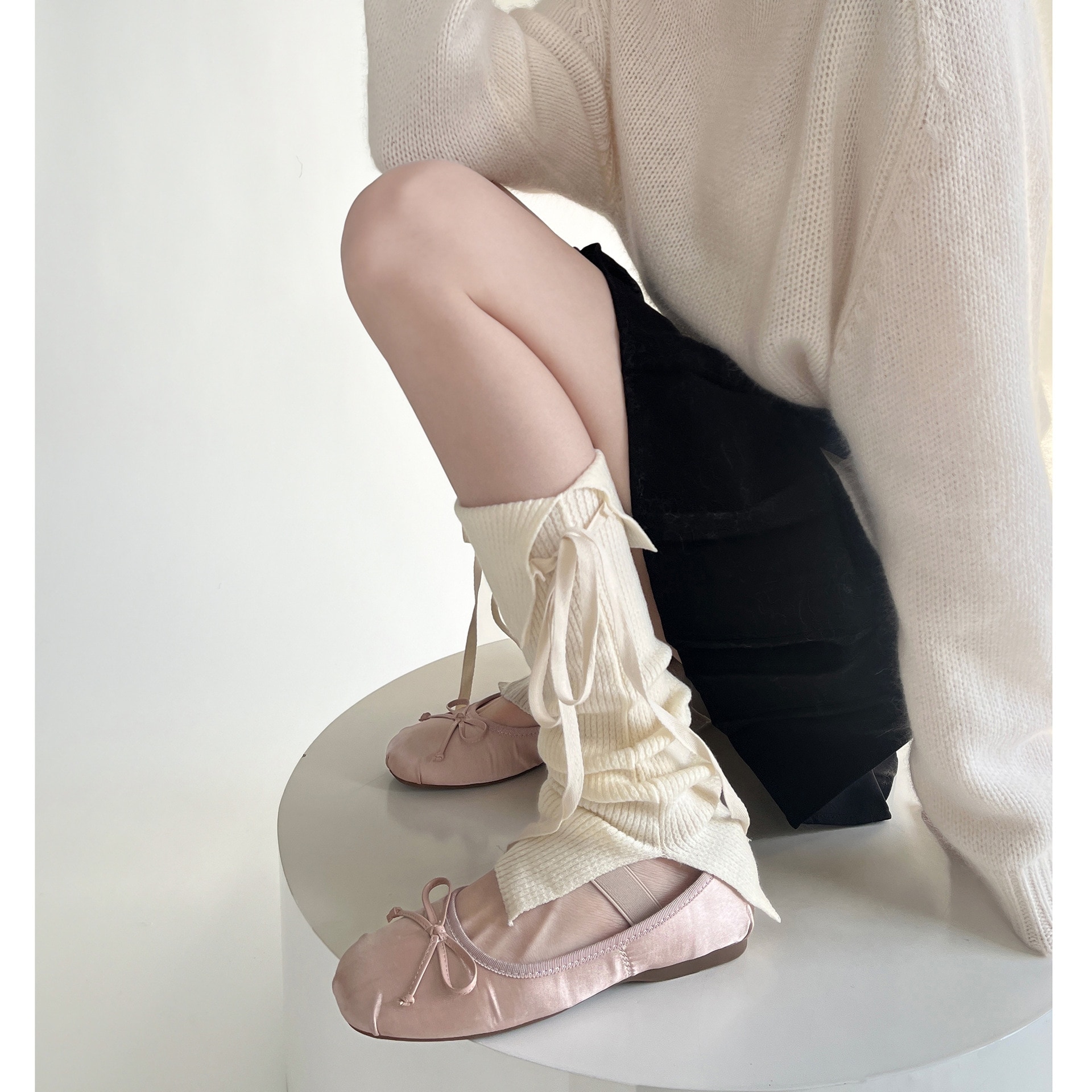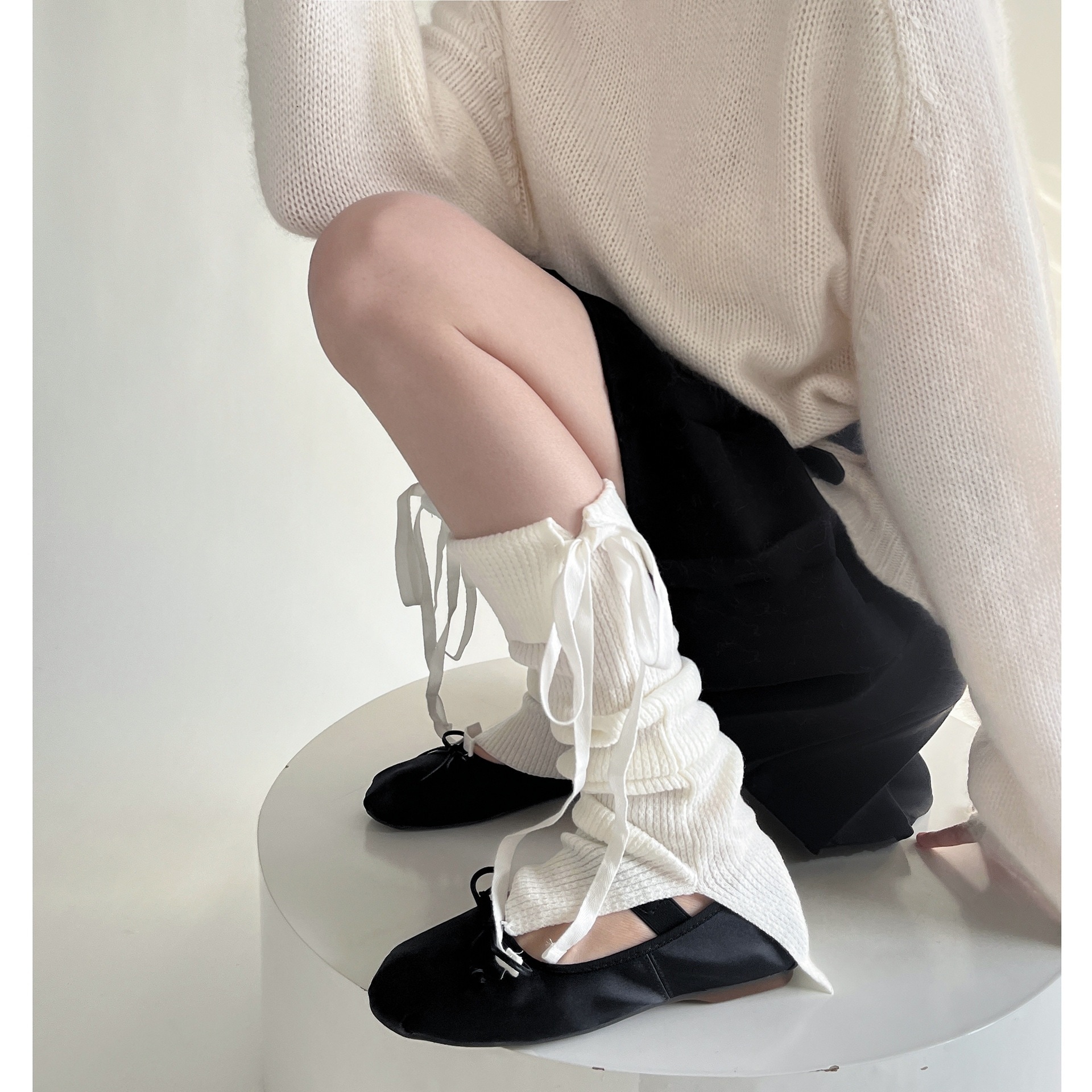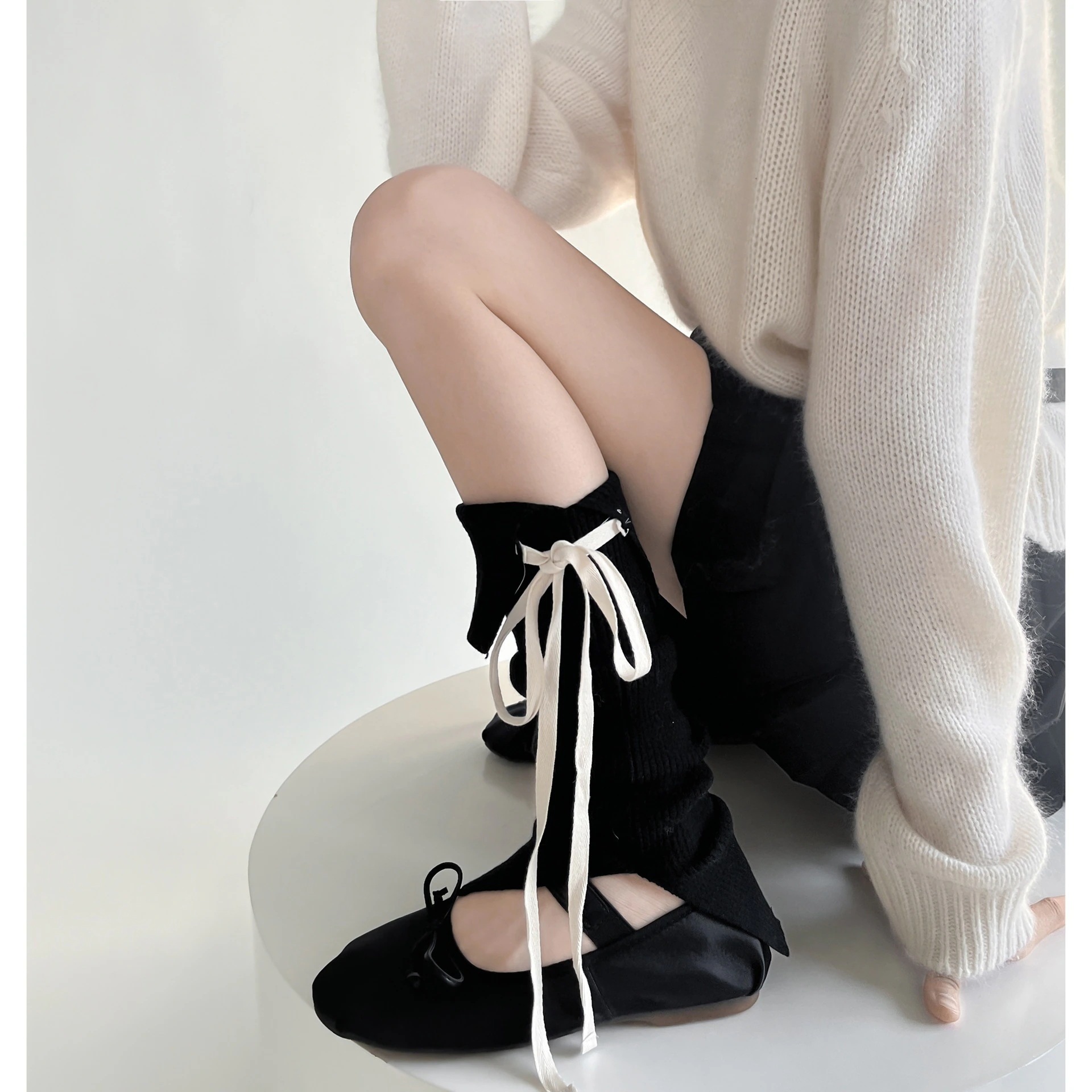 激安 jk ロリータバレエ風 ニット 無地 レッグカバー 靴下 レディース ソックス