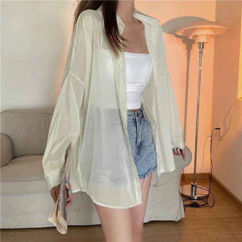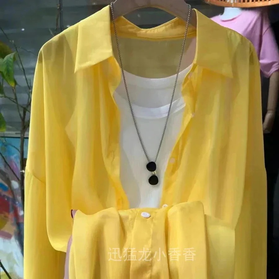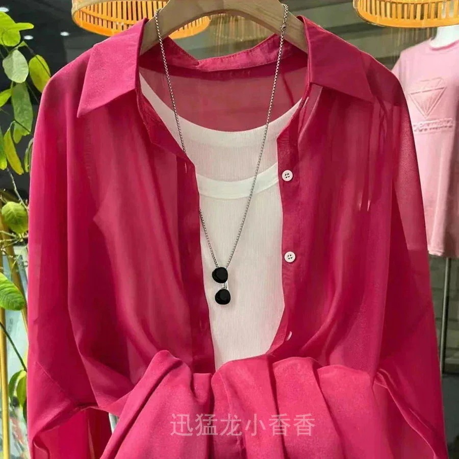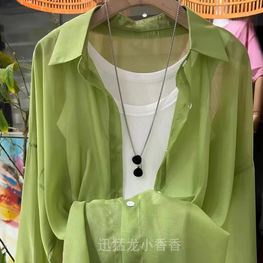 カーディガン パール糸シフォンシャツ OL シースルートップス 通勤 しい緩い氷シルクサンシャツジャケット