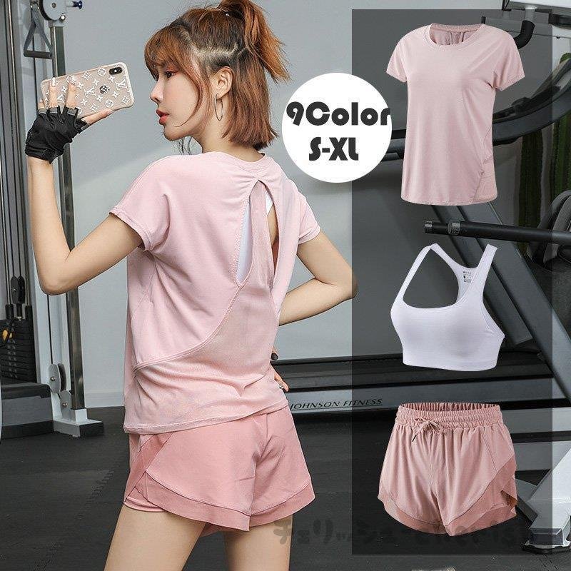 スポーツウェア レディース セット3点セット 細見せ トレーニングウェア 上下 ランニング ウェア 可愛い フィットネスウェア おしゃれヨガウエア 卒業式