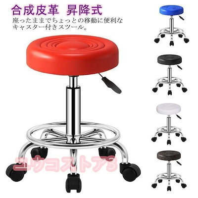当日発送 スツール キャスター付き 丸椅子 ラウンドスツール 丸イス 昇降式 高さ調節可能 回転椅子 合成皮革 キャスター付き 背もたれ無し ハイ 椅子 イス