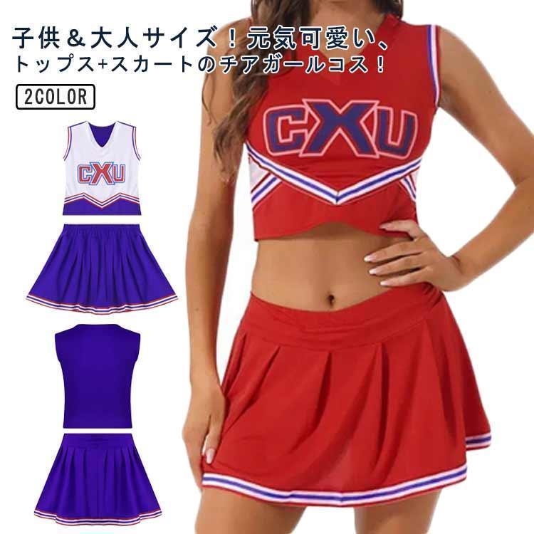 大人&キッズサイズ!チアガール 衣装 ユニフォーム チア 制服 コスチューム スポーツ 応援 上下セット チアガール 袖なし 半袖