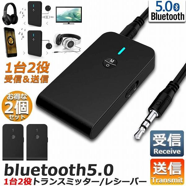 トランスミッター 2台セットBluetooth5.0 レシーバー 1台2役 送信機 受信機 ワイヤレス 3.5mm 充電式 無線 オーディオスマ