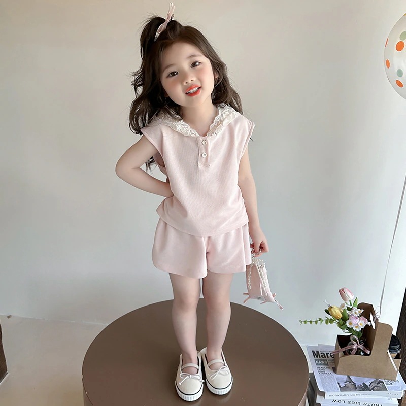 【超激安い! 】子供服 女の子の夏服ベストセット2026新型洋風子供レースノースリーブ2着赤ちゃんの夏服 韓国 子供服
