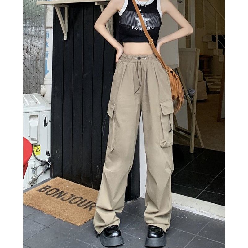 ワイドパンツ韓国版ワークトラウザーズ婦人服2023年夏の新作パンツハイウエストトラウザースリムワイドレッグカジュアルパンツ