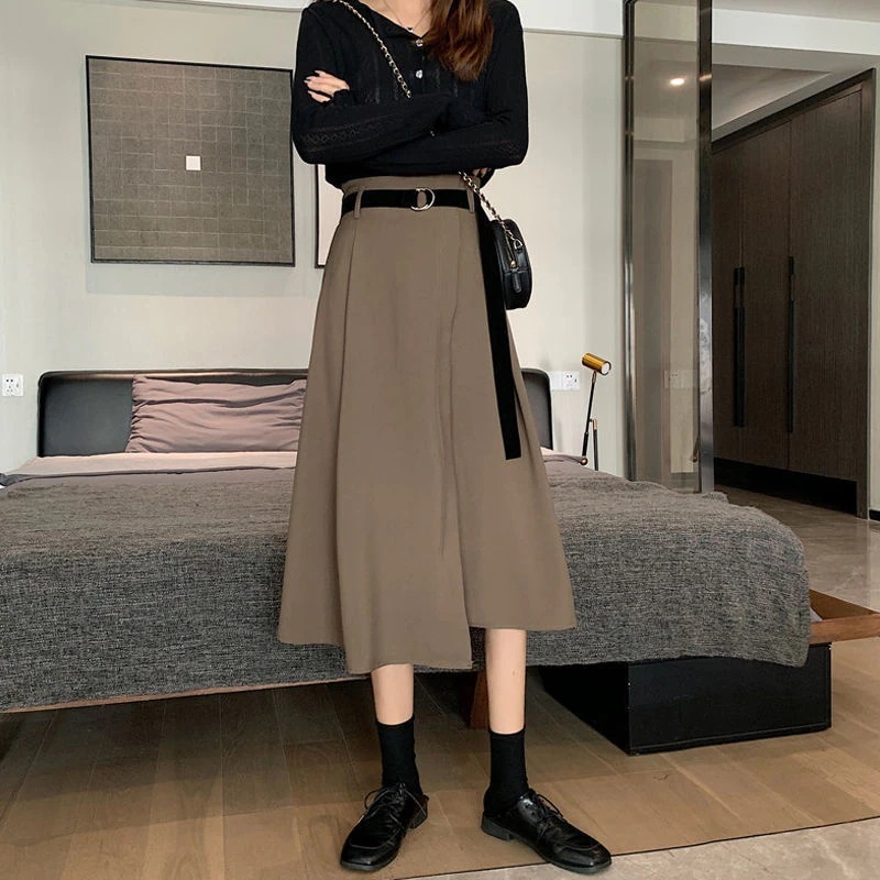 脚魅せミニスカート プリーツスカート 話題!サテンスカート新作ロングフレアスカートハイウエストレトロベルトをプレゼント!ロングスカートマキシスカート