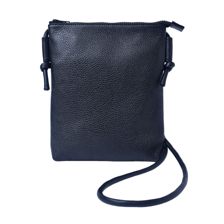 柔らかめのレザーです。小さいお財布、リップ、スマホ、ハンカチやティッシュくらいは入ります。もっと入るのですが