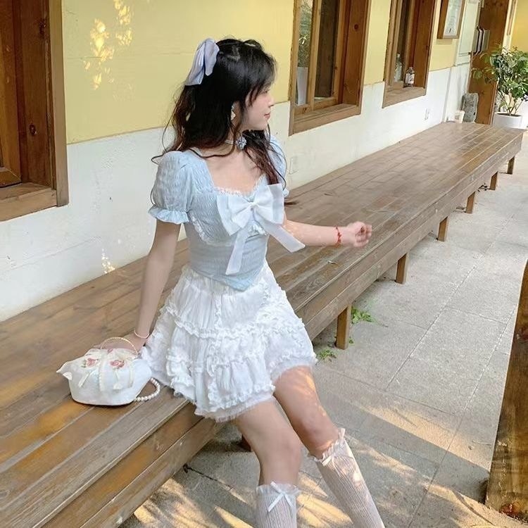 セットアップ 涼しく楽ちんセットアップ韓国ファッション ワンピース夏 ドレス 茶会レースケーキスカート女