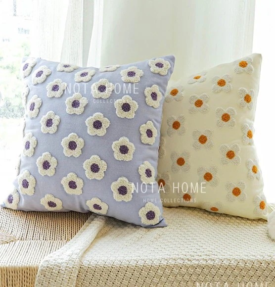 デイジークッション3色クッションカバーカバーイエロー黄色ブルー青パープル紫花柄フラワーもこもこ大きい