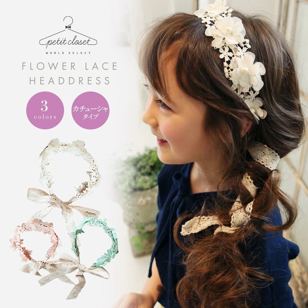 カチューシャ キッズ 女の子 子供 ヘッドドレス 花冠 レース パール 上品 華やか 可愛い お洒落