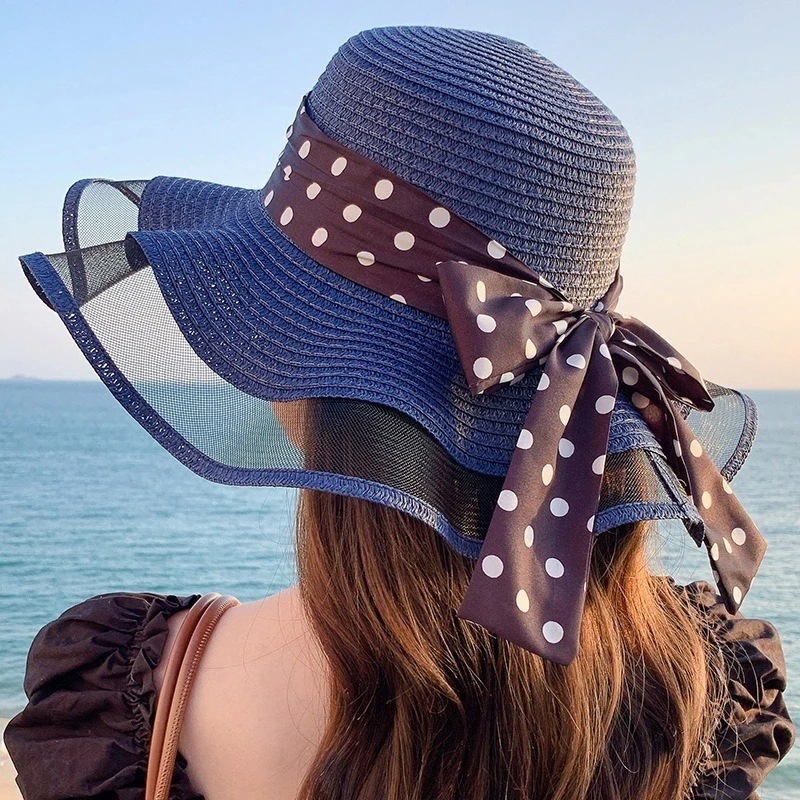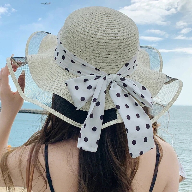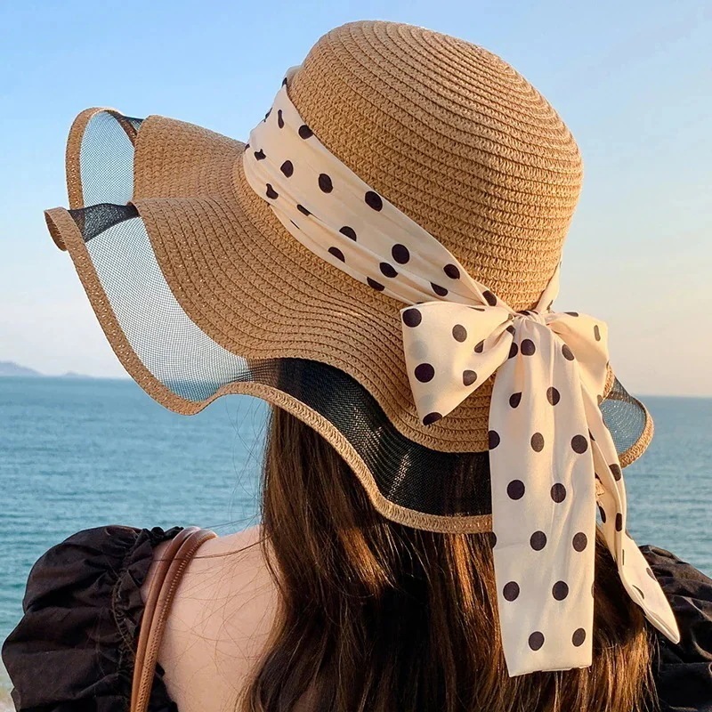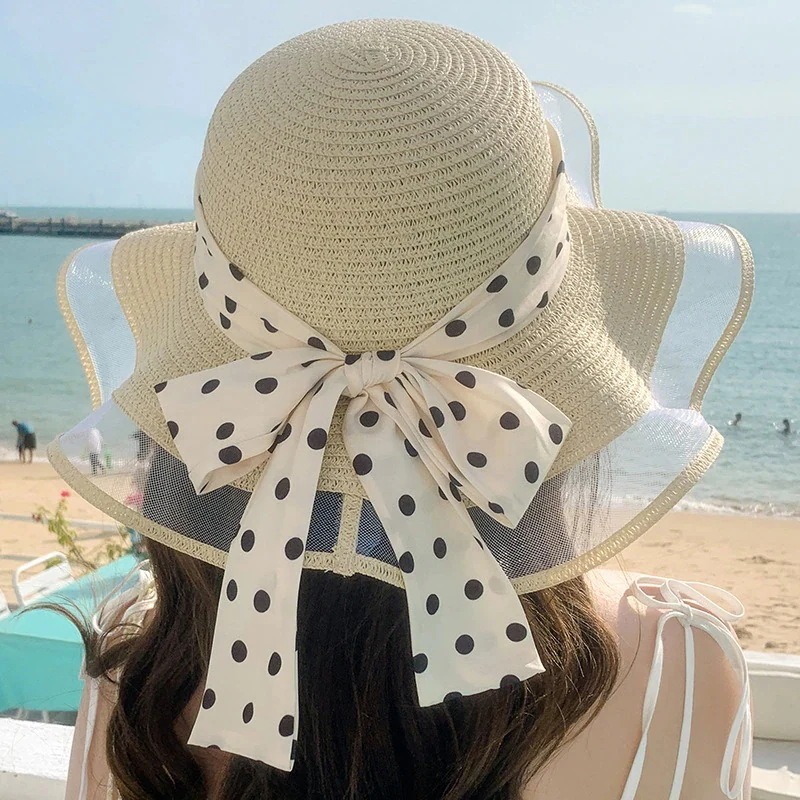 紫外線対策 紫外线防护韓国 ファッション 春夏 ドット ビーチハット キャップ サンバイザー レディース UVカット アウトドア キャップ 小顔効果