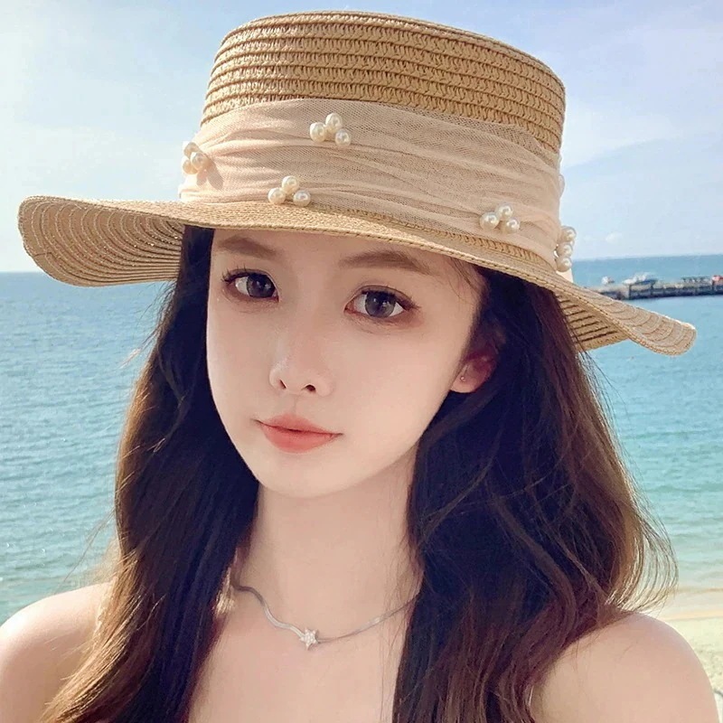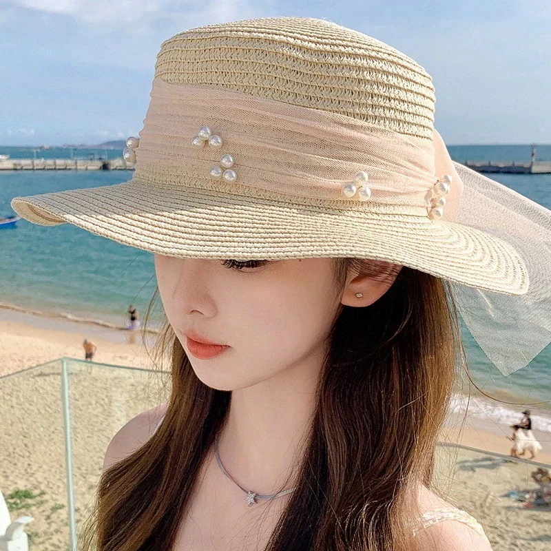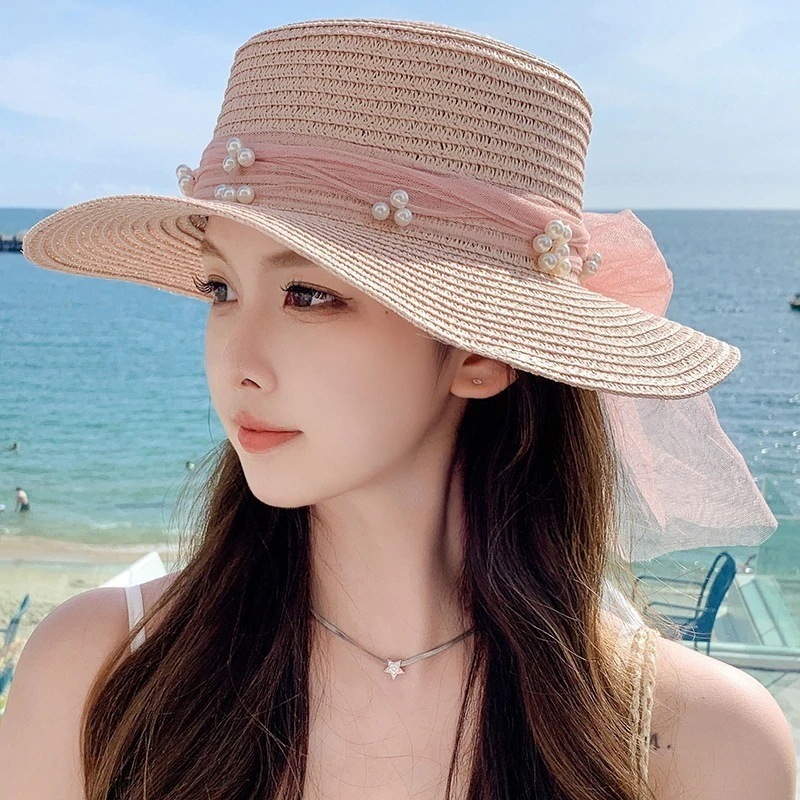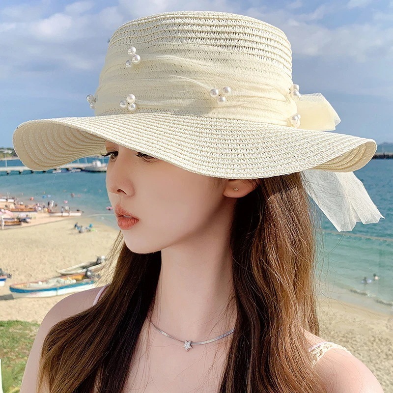 紫外線対策 紫外线防护韓国 ファッション 春夏 ビーチハット キャップ サンバイザー レディース UVカット 真珠 アウトドア キャップ 小顔効果